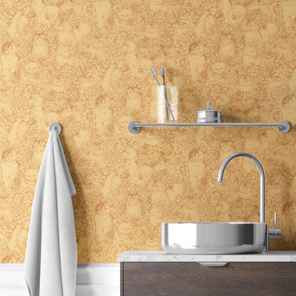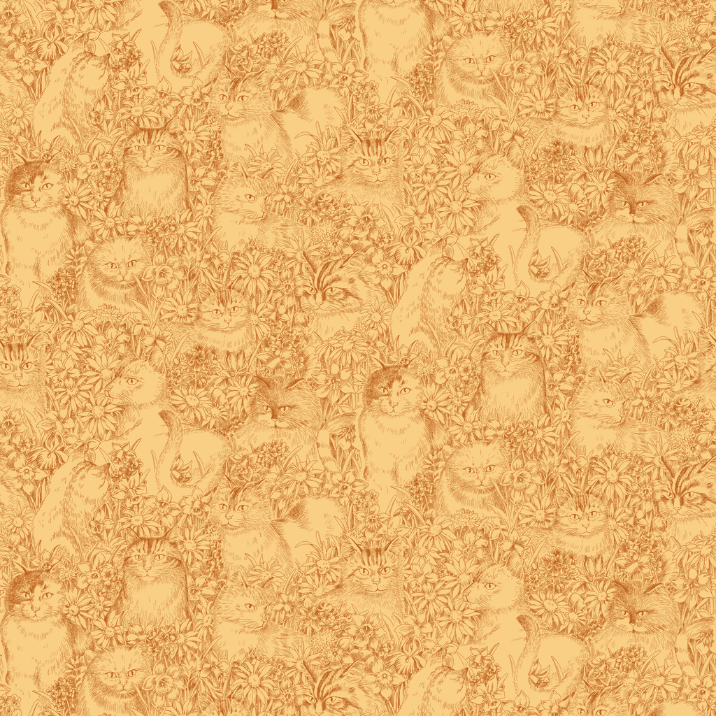 Floral Cat Sketch on Gold Wallpaper