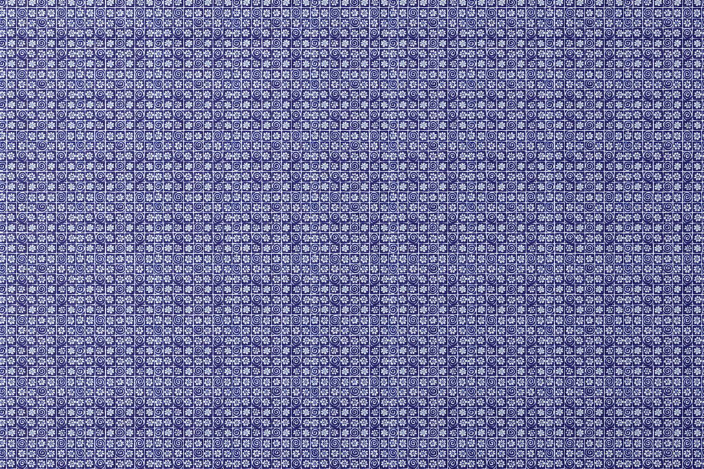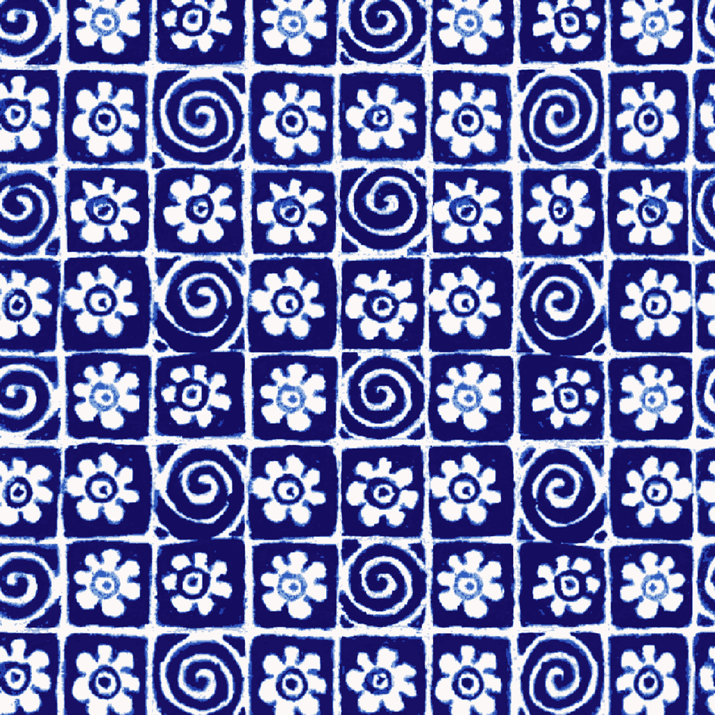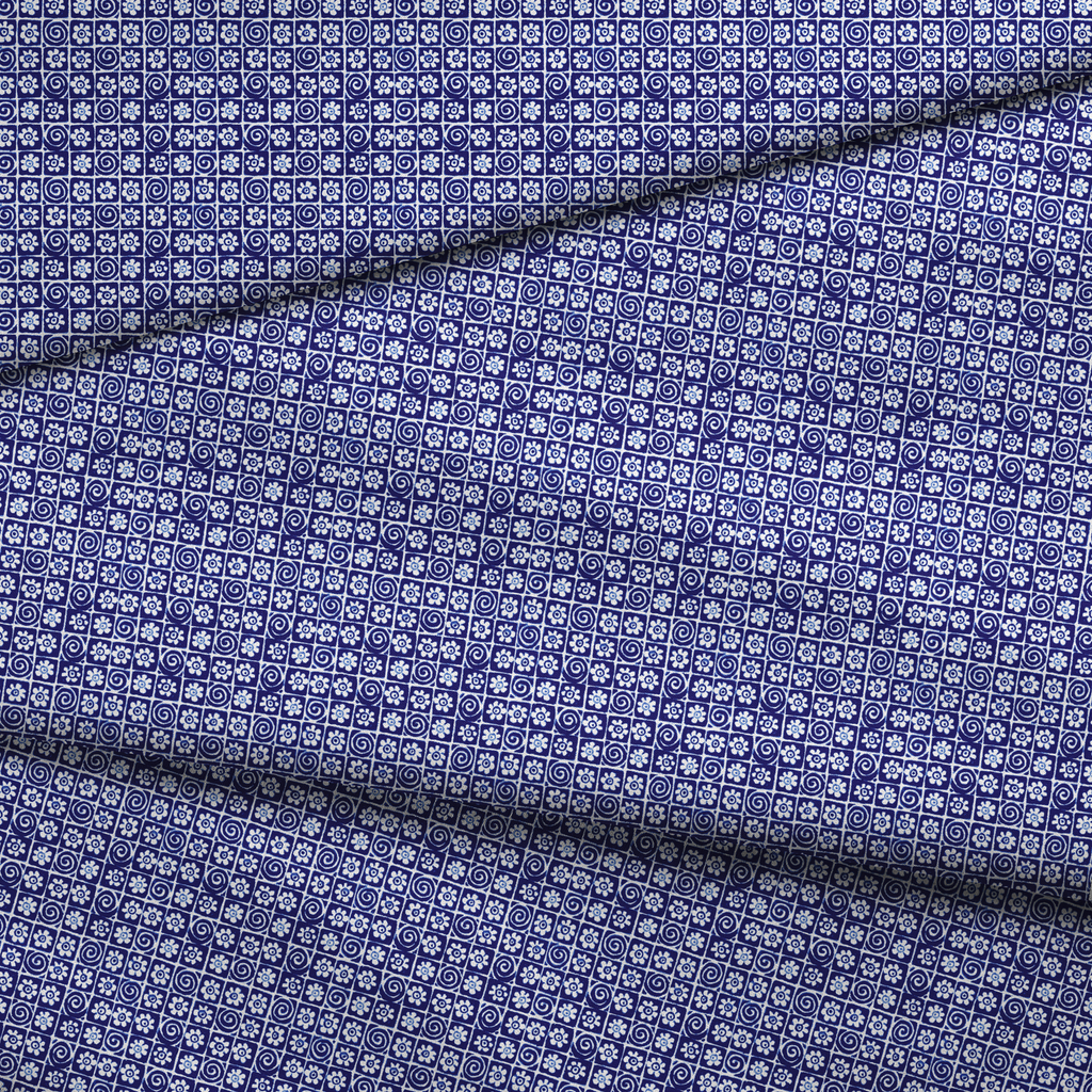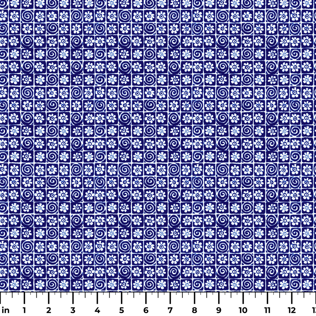 Floral Swirl Tiles on Indigo Fabric