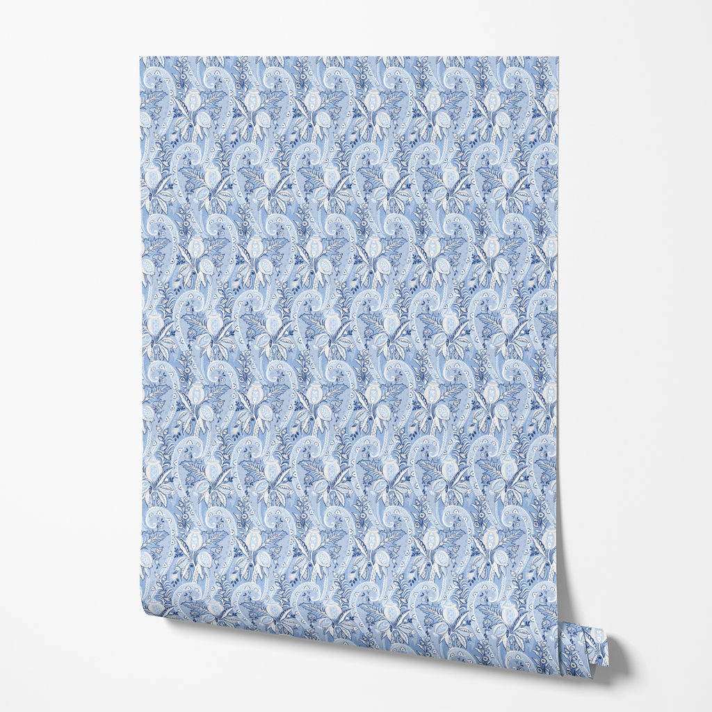 Garden Paisley on Blue Wallpaper