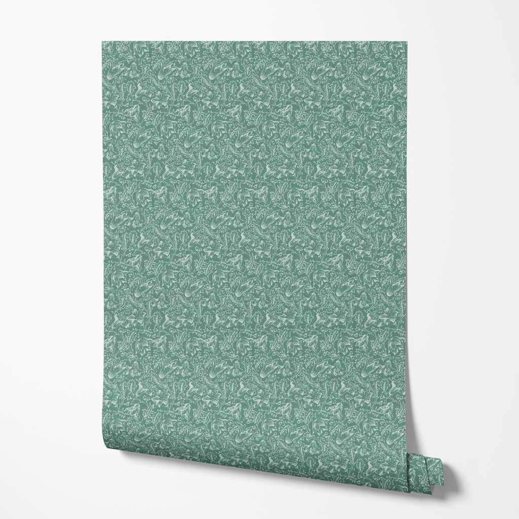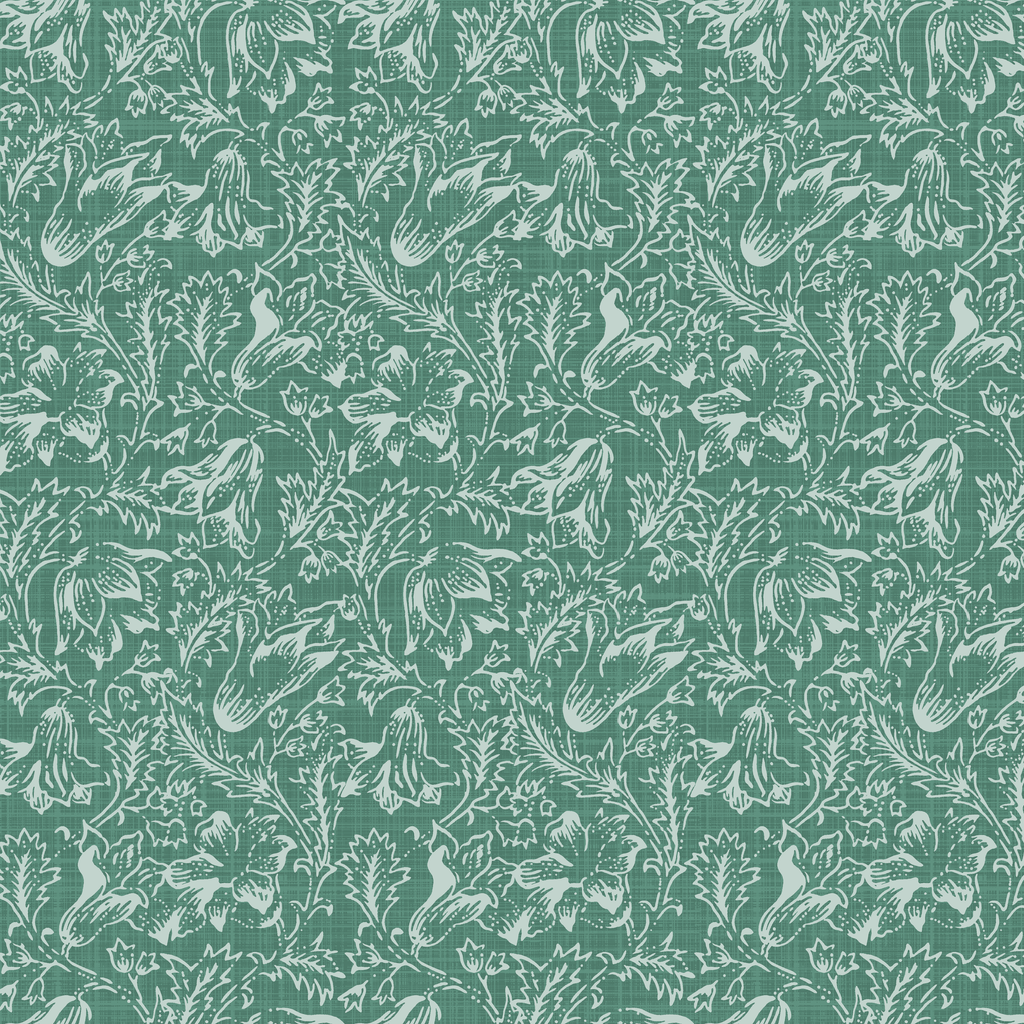 This traditional green botanical pattern features delicate white floral and leaf illustrations, creating an elegant heritage design with a vintage-inspired woodland motif.