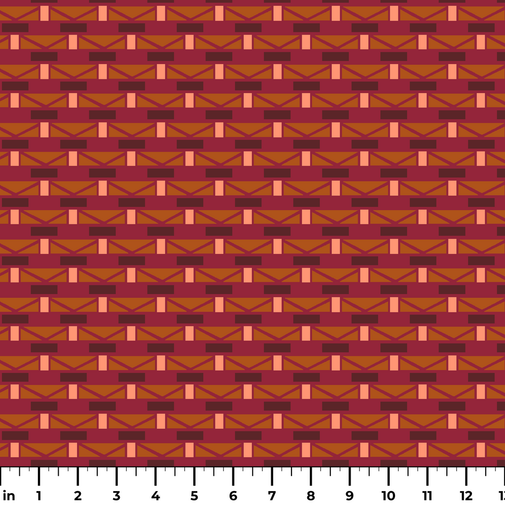Vintage design with geometric rectangles in bold red, burgundy and orange colorways perfect for any crafting project.