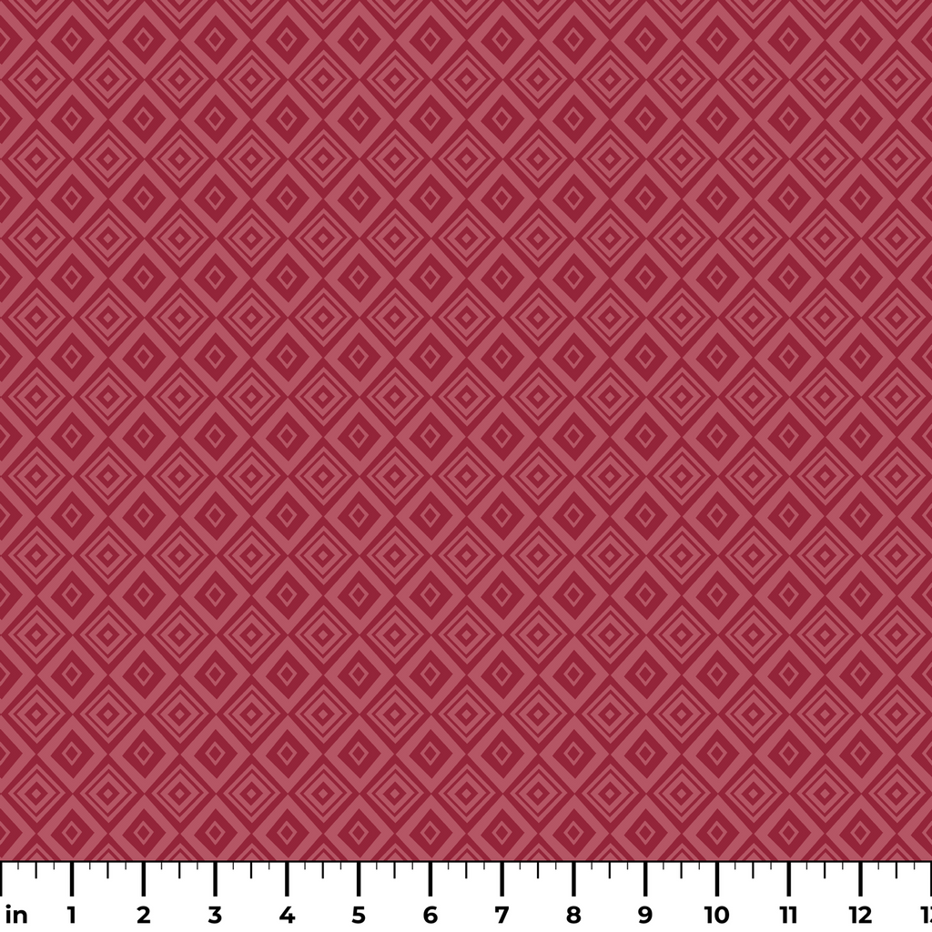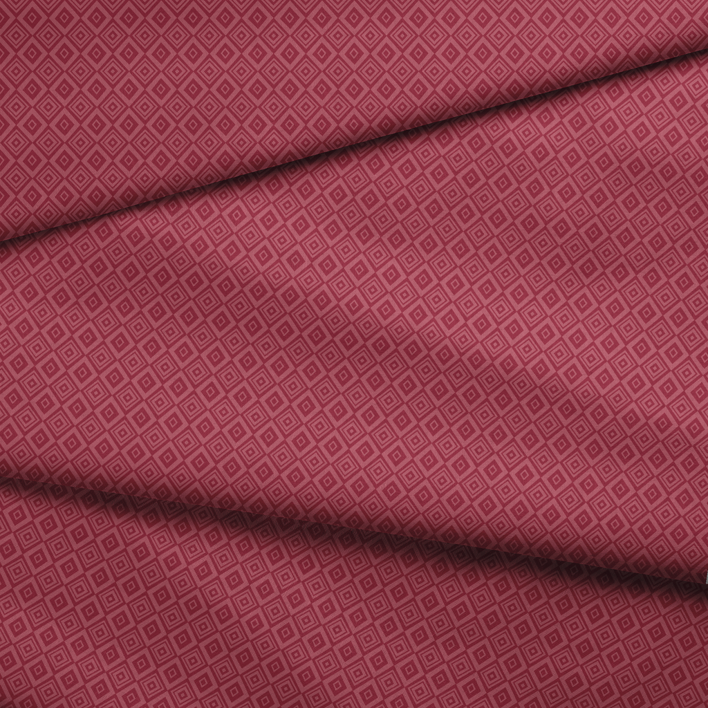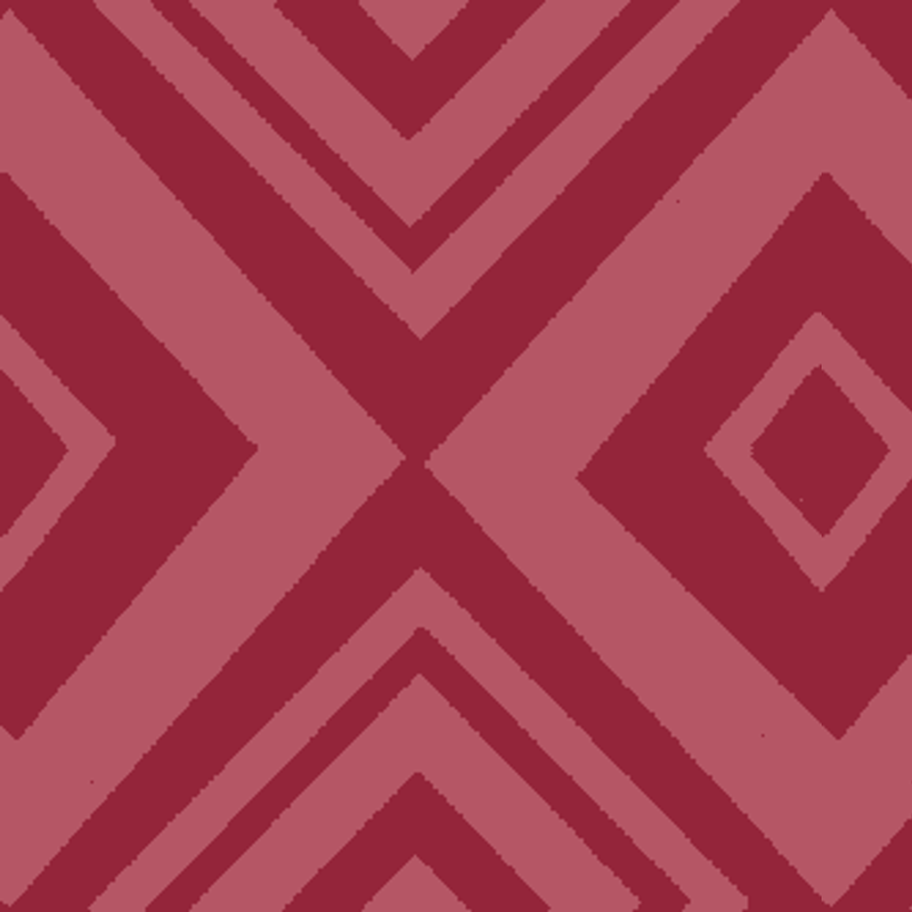Bold geometric chevron pattern in rich burgundy and rose tones creates a striking diamond focal point with modern angular lines and sophisticated color blocking.