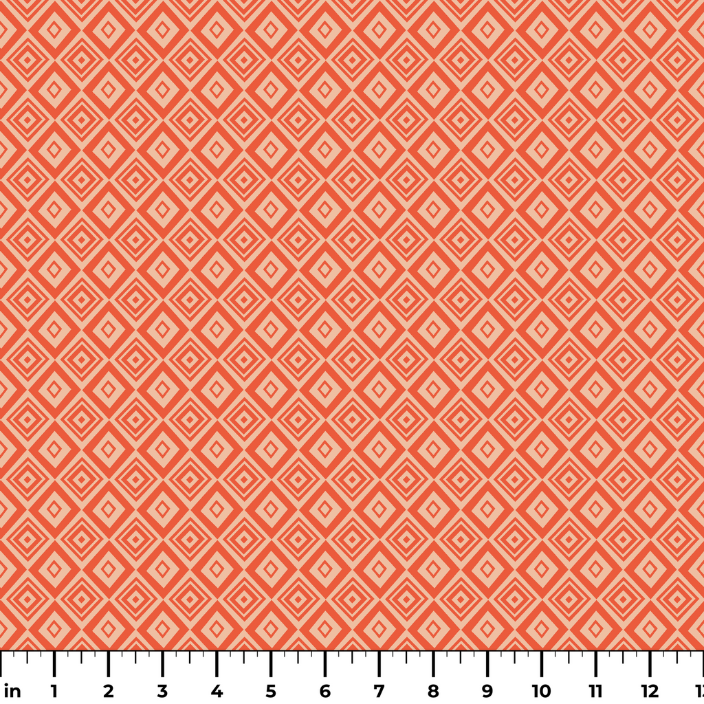Bold orange and cream geometric pattern with modern angular stripes creating dynamic X-shaped intersections for contemporary home decor and apparel.