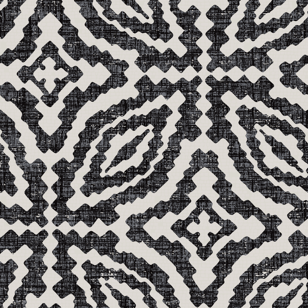 Bold geometric tribal pattern in black and white, featuring diamond shapes and eye-catching symmetrical designs perfect for modern bohemian home decor.