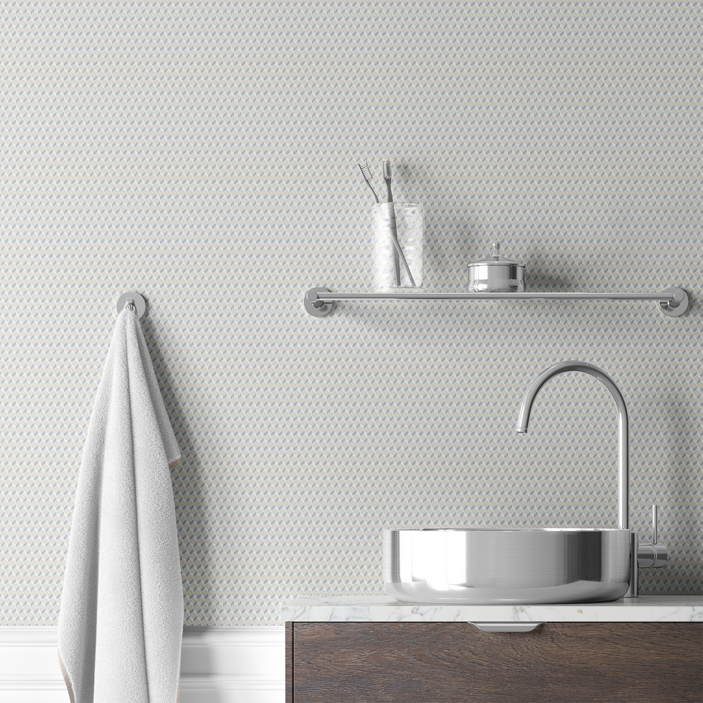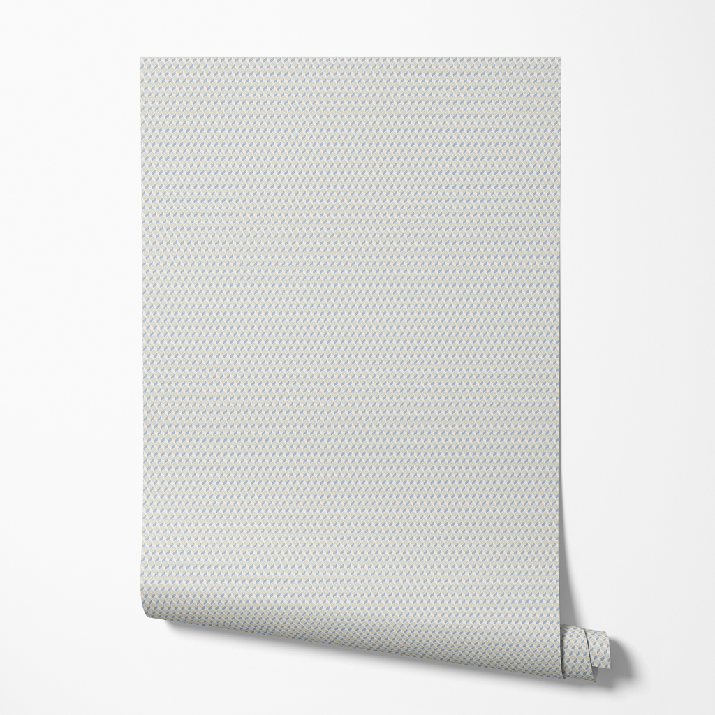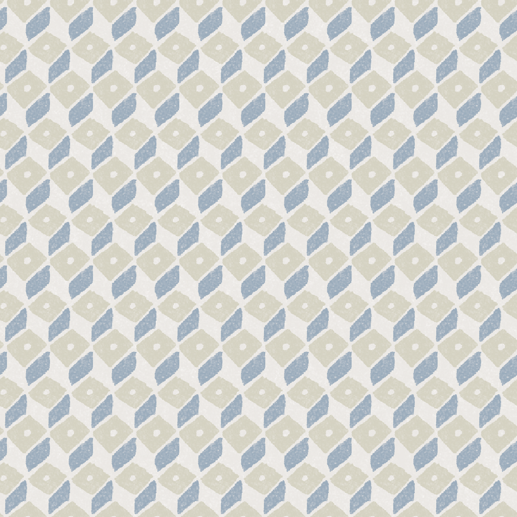 Subtle geometric pattern featuring diamond-shaped motifs in a harmonious palette of soft blues and beiges, perfect for contemporary home decor with a calm, sophisticated aesthetic.