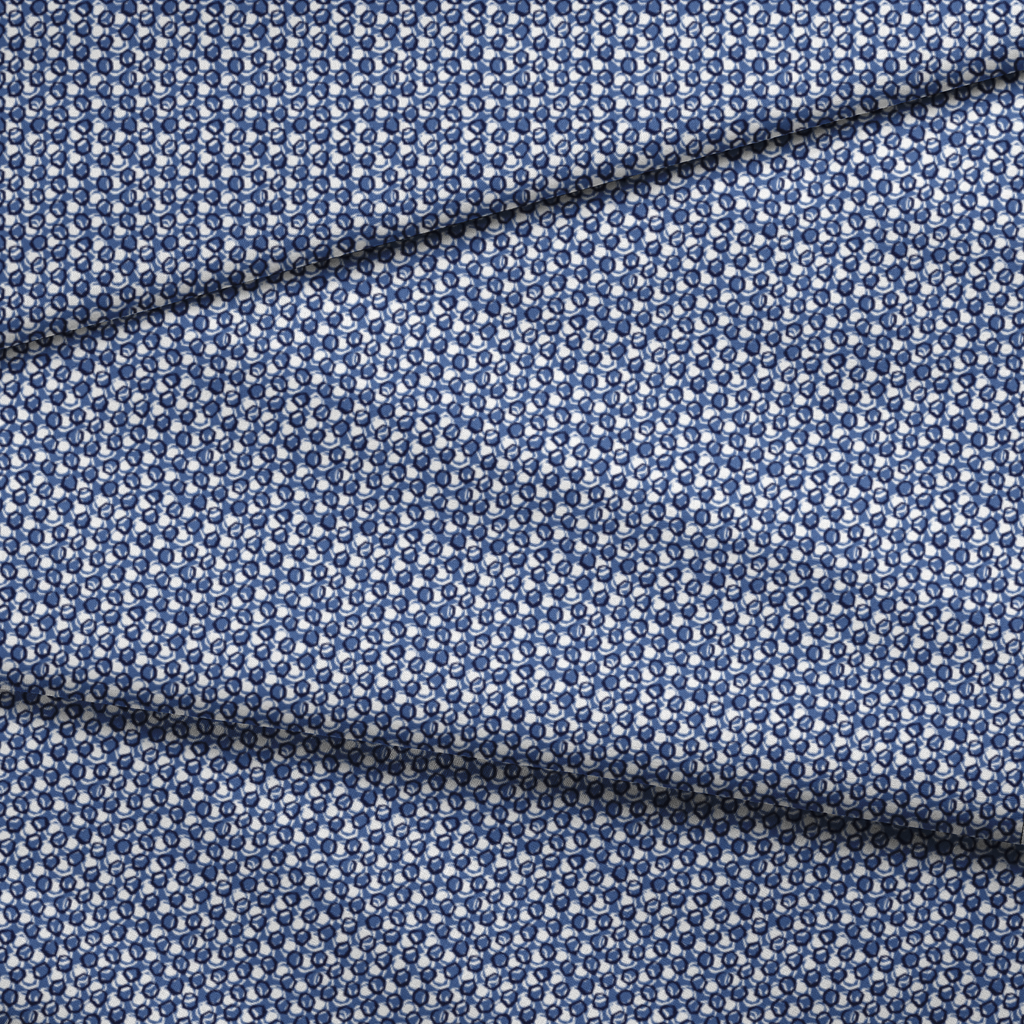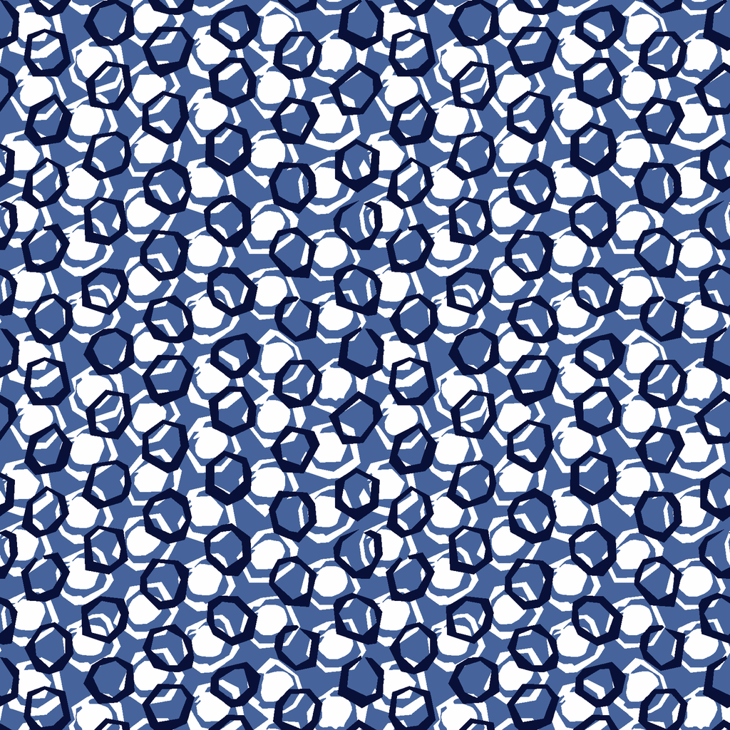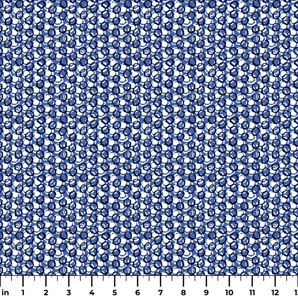 Dancing across this fabric, interlocking hexagons create a dynamic geometric rhythm in shades of navy, periwinkle blue, and crisp white. The slightly irregular edges of the shapes give the pattern a hand-drawn quality, adding warmth to this modern design. This versatile print would make stunning throw pillows or a standout lining for tote bags and backpacks.