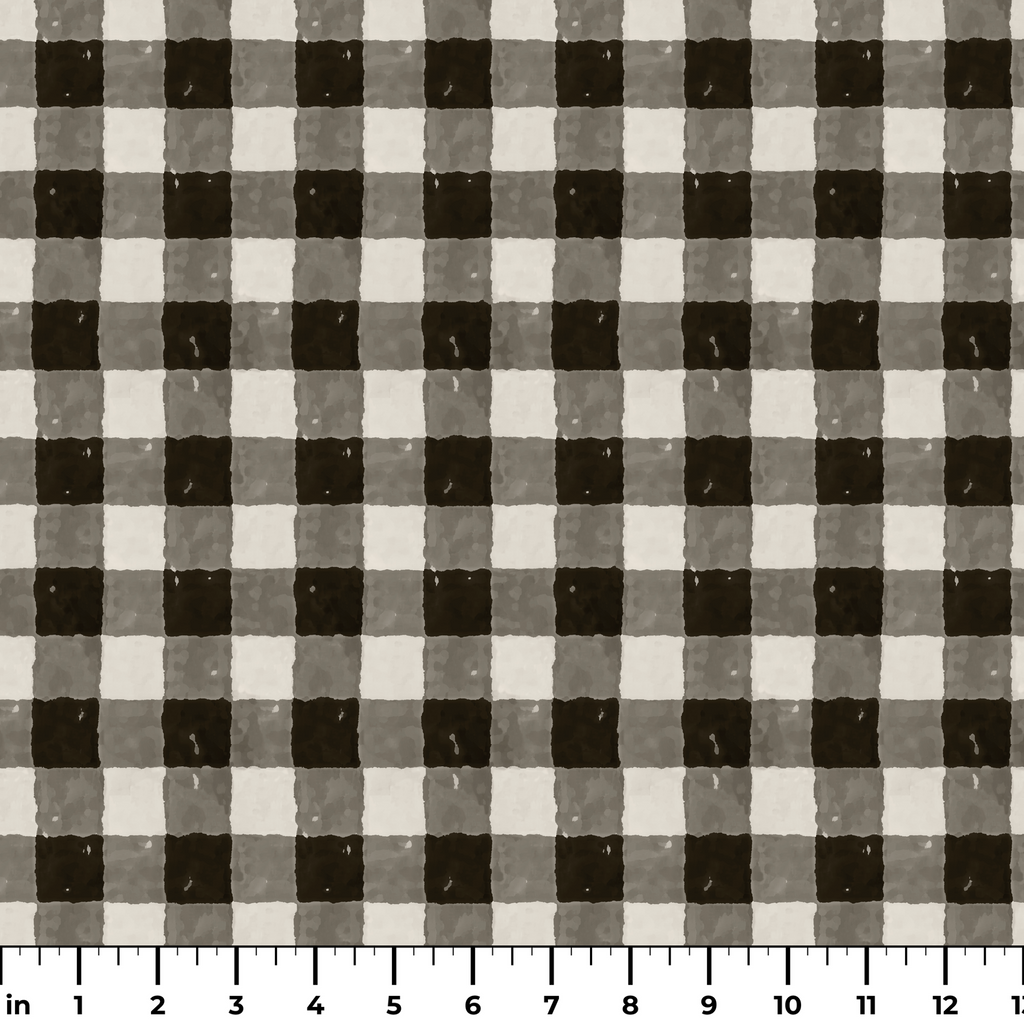 Black and white gingham plaid pattern with vintage watercolor, perfect for modern farmhouse style.
