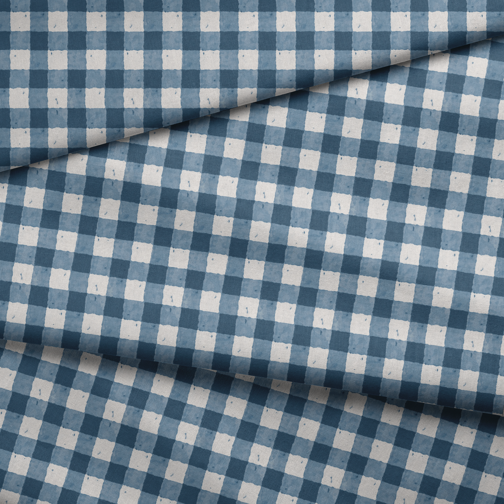 Gingham Watercolor in Blue Fabric