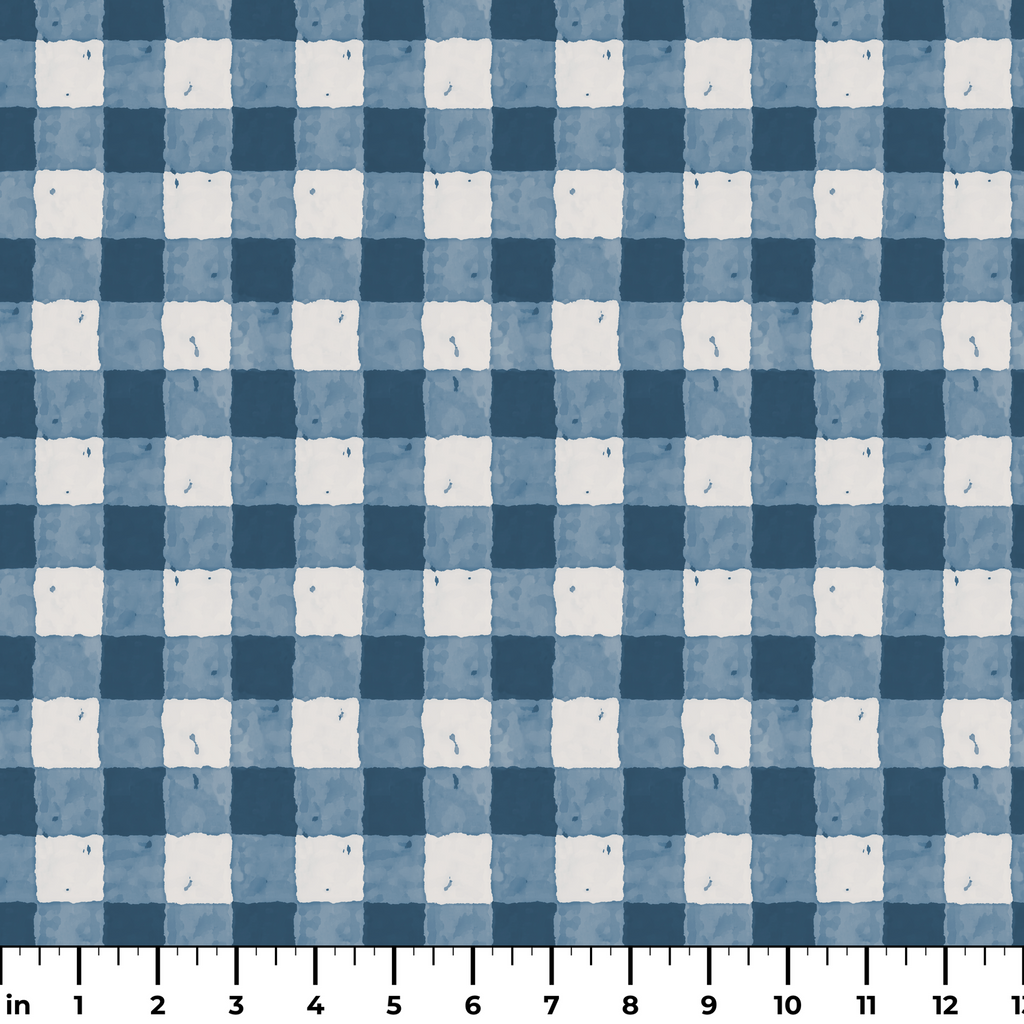 Blue and white gingham plaid pattern with vintage watercolor, perfect for modern farmhouse style.