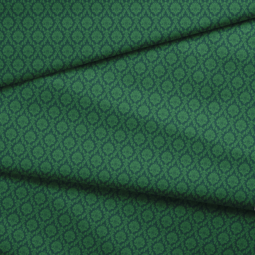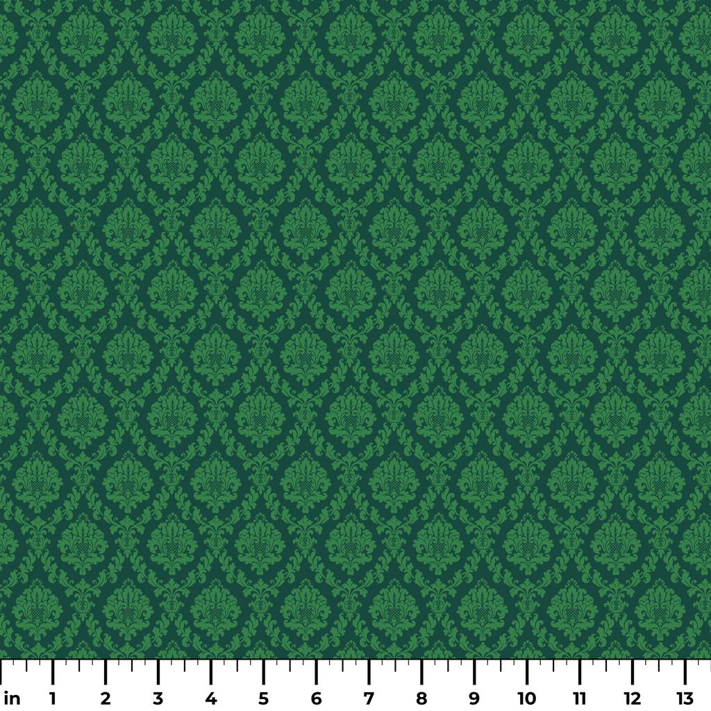 Classic forest green damask pattern featuring elegant floral motifs in a traditional design. Perfect for seasonal heritage-inspired home decor and crafts.