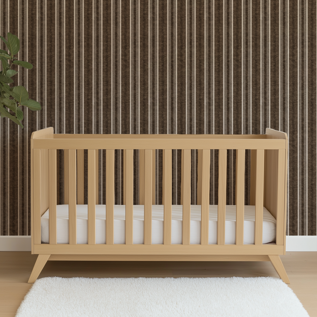 Classic brown and cream striped pattern featuring alternating wide and narrow vertical stripes in a timeless design perfect for any space.