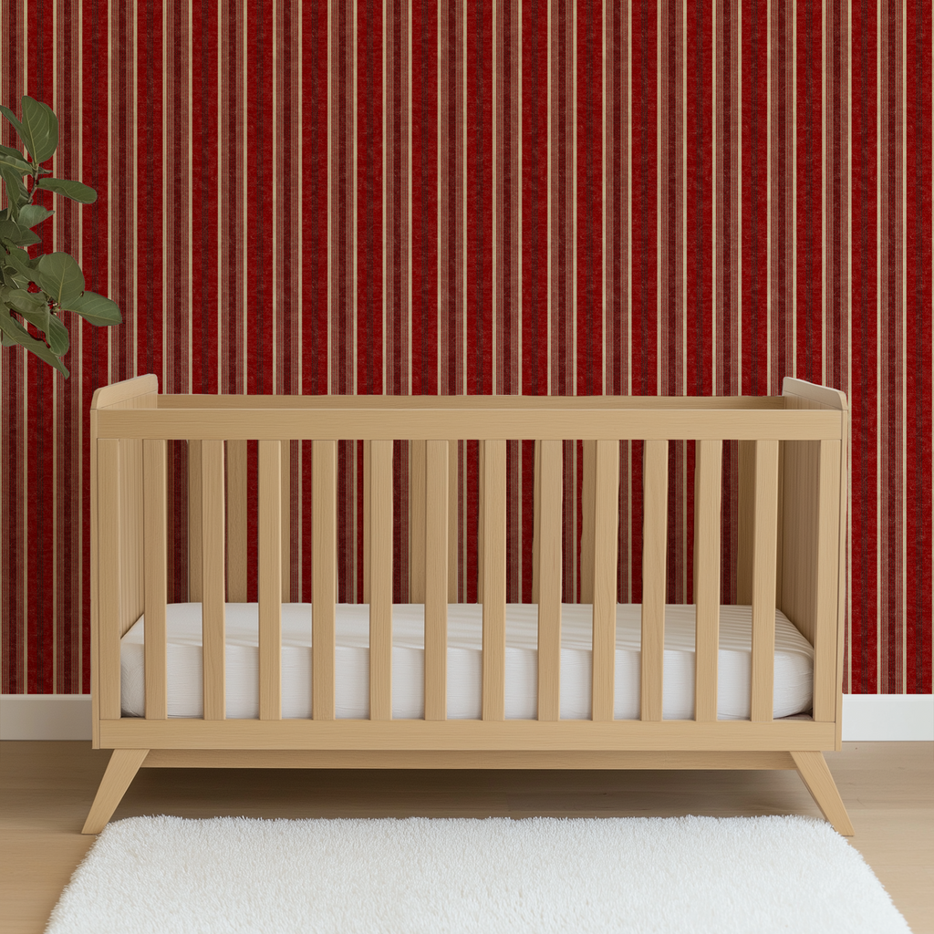 Classic burgundy and cream striped design with elegant vertical stripes perfect for vintage-inspired spaces.