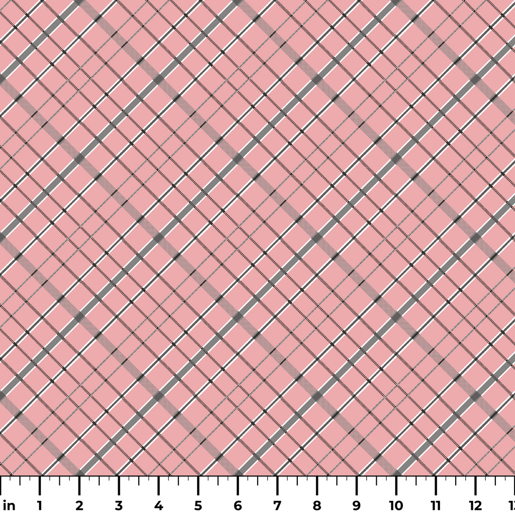Edgy pink plaid pattern with intersecting gray and white lines, creating a timeless geometric design perfect for both modern apparel and classic home decor accents.