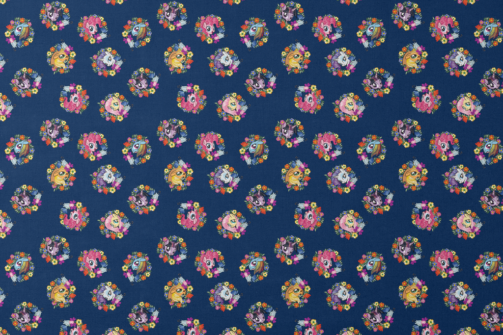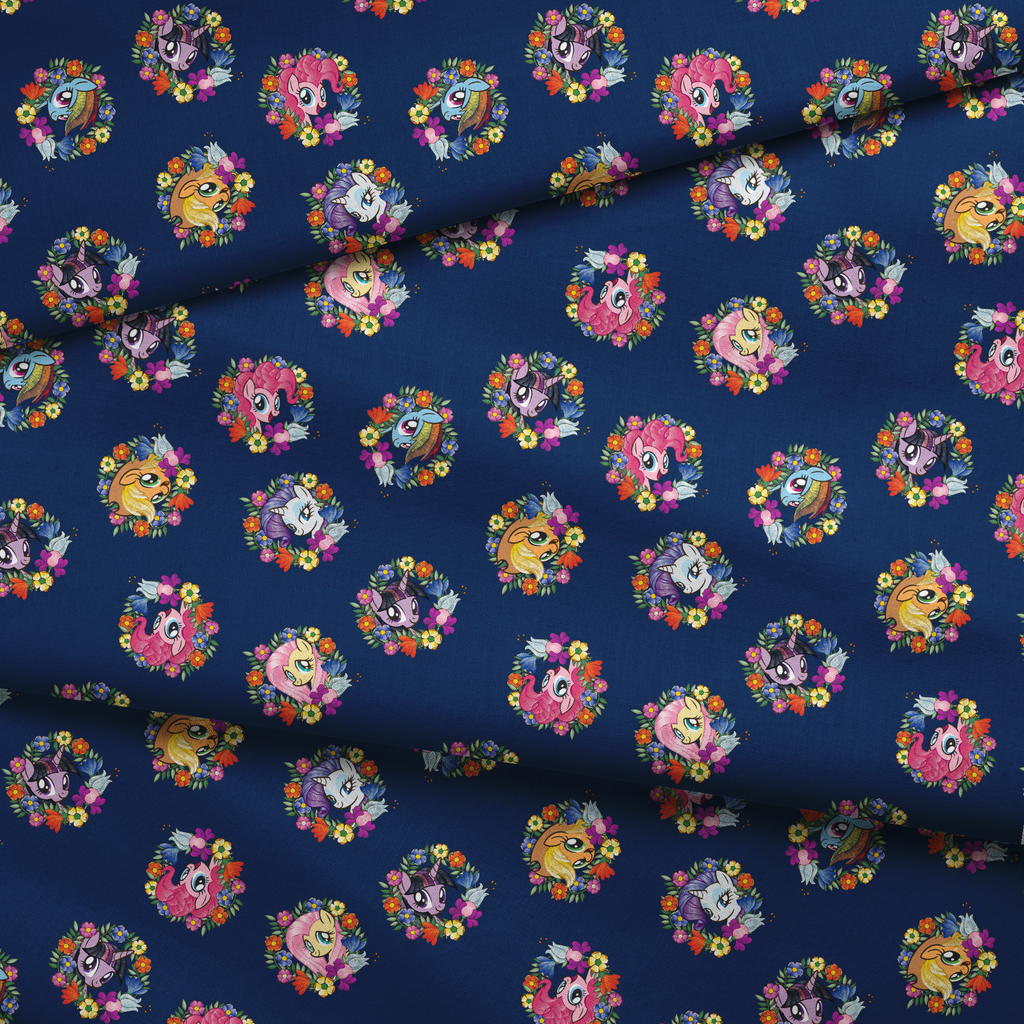 Hasbro My Little Pony Floral Medallions on Navy Fabric