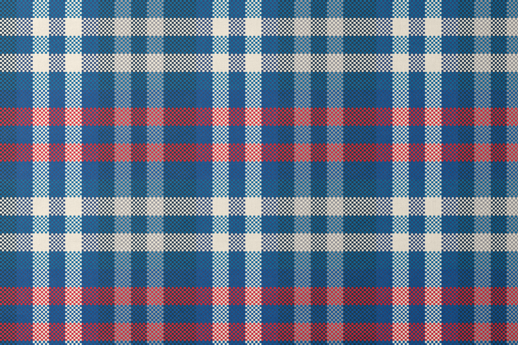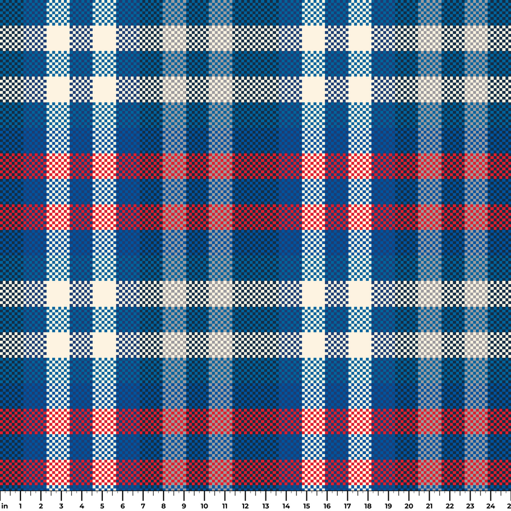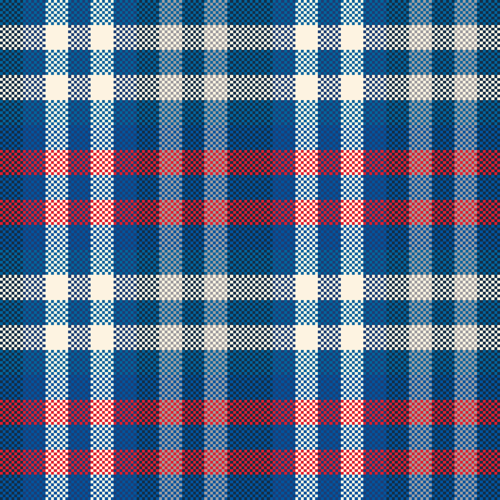 Reminiscent of cozy Highland traditions, this rich plaid design features bold navy blues intersected by crisp white lines and accented with vibrant red bands. The classic checkered pattern has a slightly pixelated texture that adds depth and dimension to the traditional tartan design. Perfect for creating statement pieces like throw pillows or warming table runners that bring a touch of heritage charm to any space. This timeless pattern would also make wonderful holiday crafts or rustic home decor with its balanced combination of traditional colors.