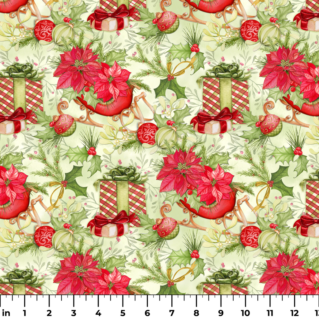 Holiday Sleigh & Poinsettia Toss by Nicole Tamarin Fabric