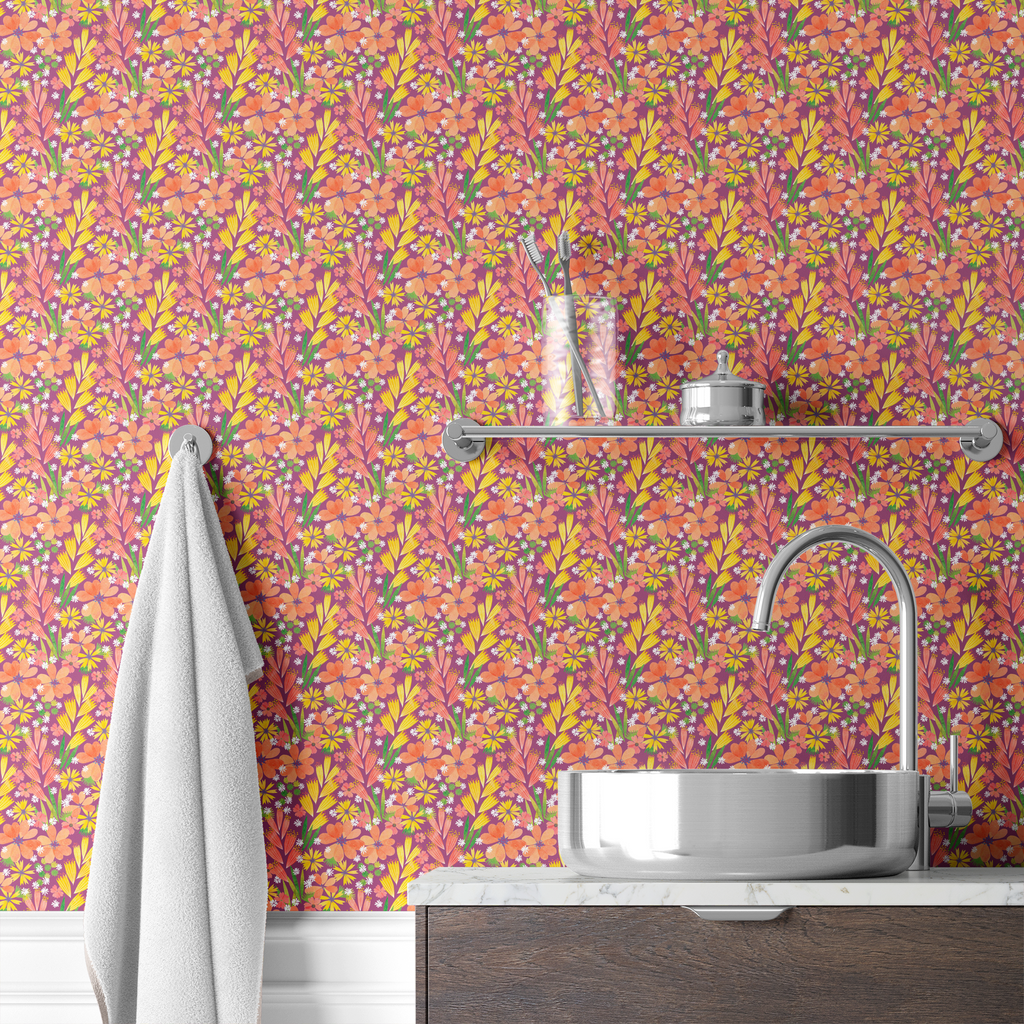 Holly Thomas Little Blooms on Orange Wallpaper
