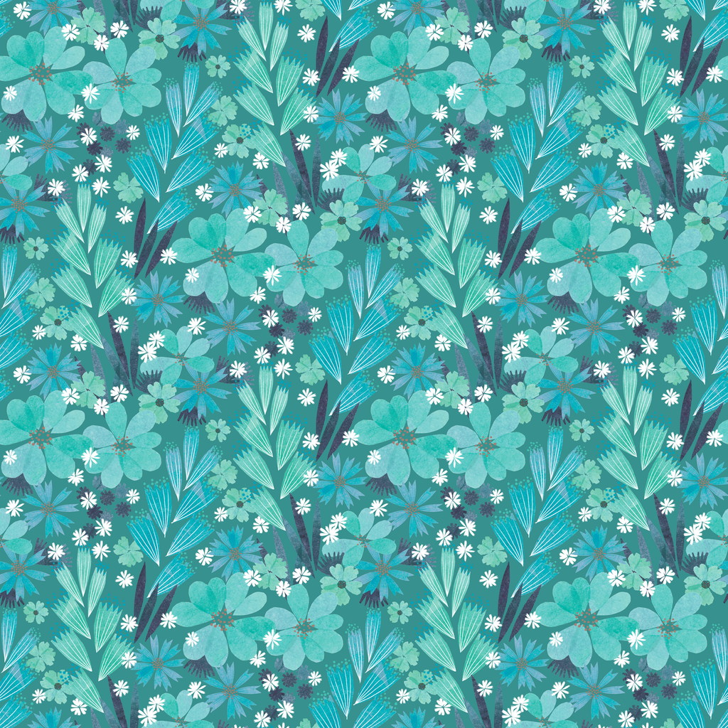 Holly Thomas Little Blooms on Teal Wallpaper