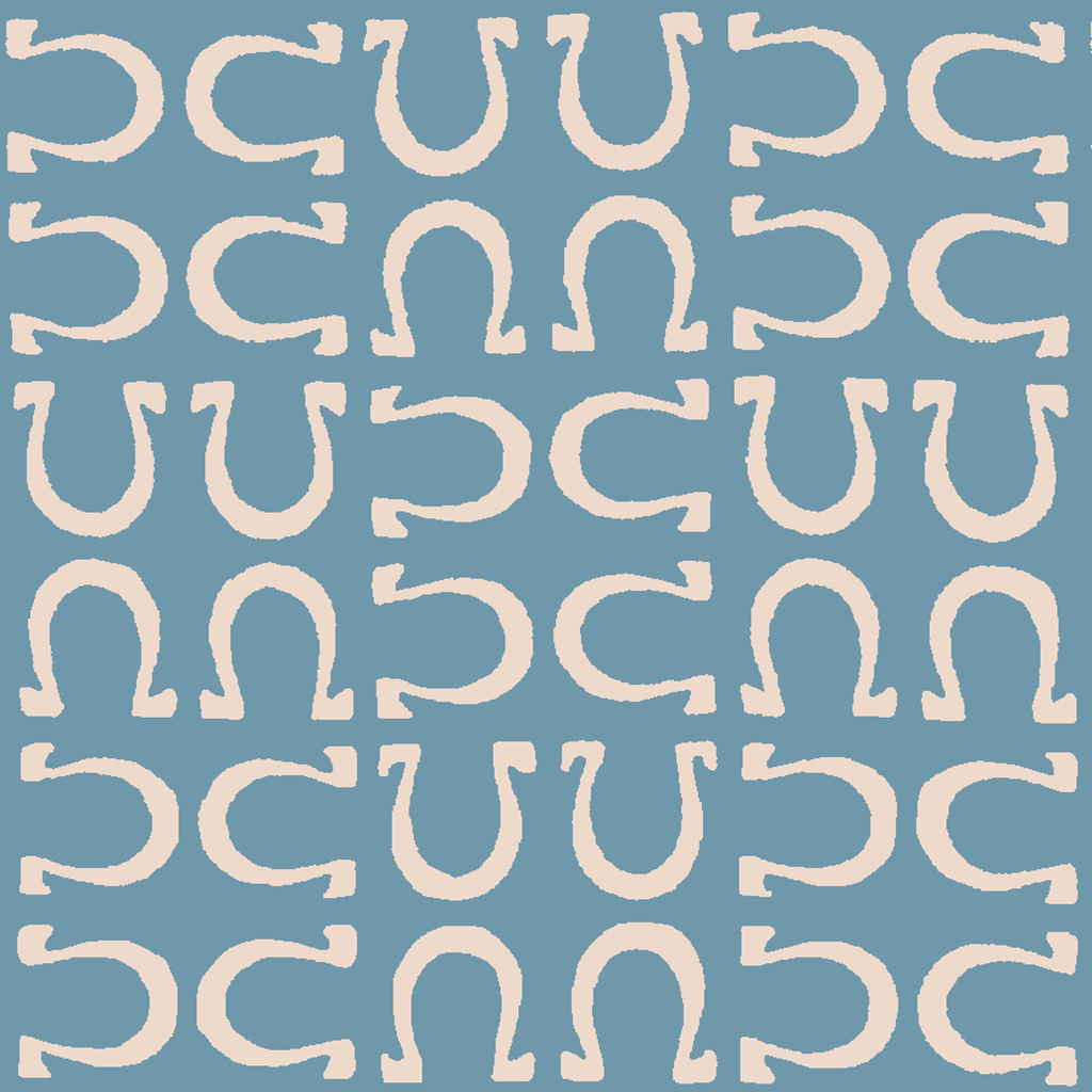 Modern geometric pattern in soft blue featuring curved U and horseshoe shapes in an elegant repeating design. Perfect for contemporary home decor with a retro touch.