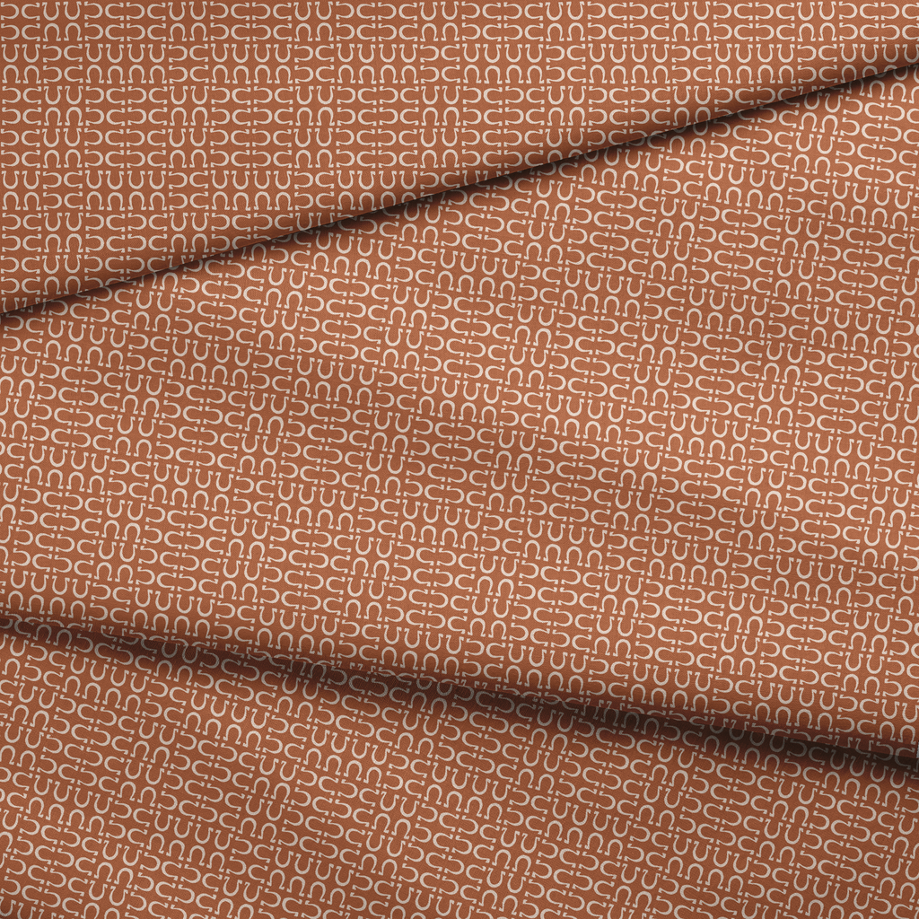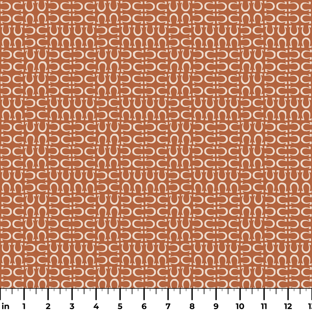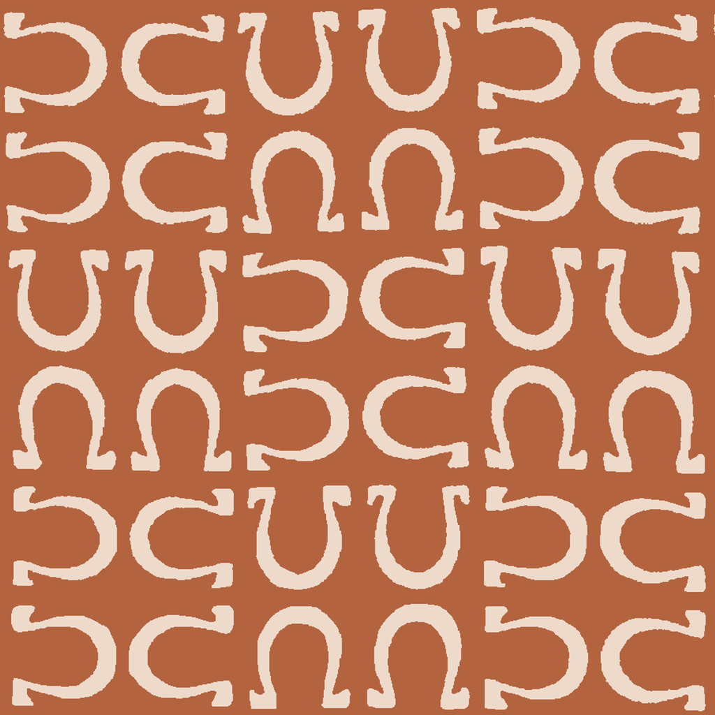 Contemporary horseshoe pattern in warm terracotta brown with a geometric design. This bold motif combines heritage-inspired equestrian elements with modern southwestern style.