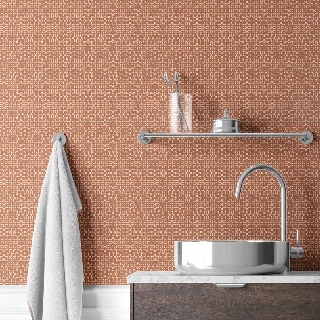 Contemporary horseshoe pattern in warm terracotta brown with a geometric design. This bold motif combines heritage-inspired equestrian elements with modern southwestern style.