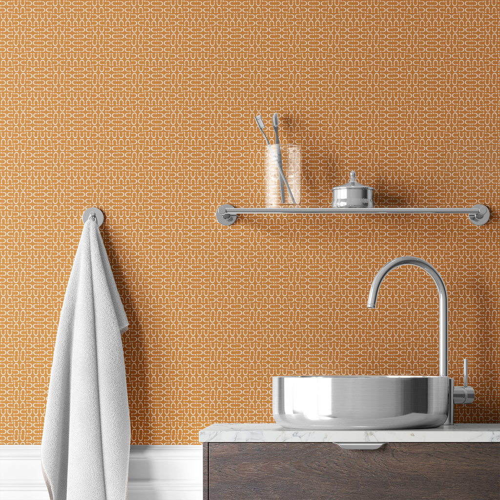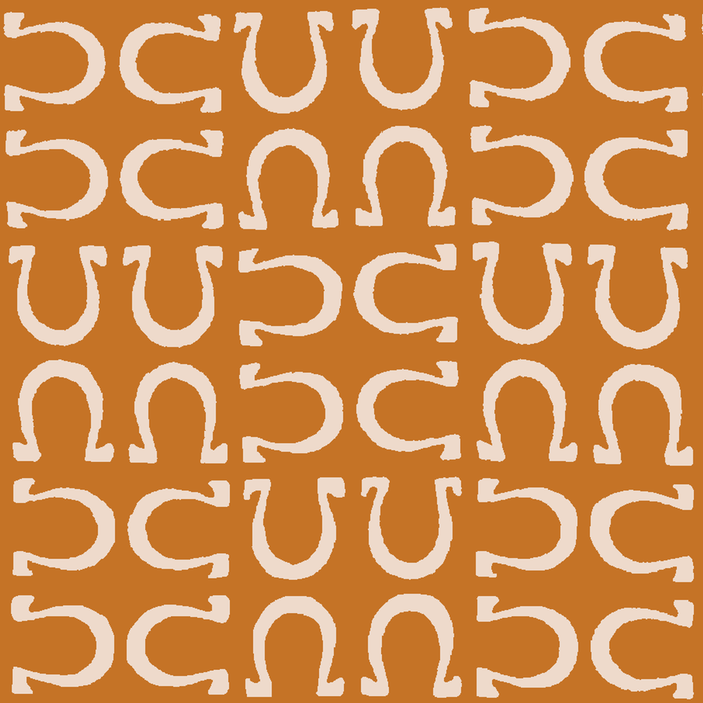 Warm terracotta geometric pattern featuring stylized horseshoe and omega symbols in a contemporary midcentury-inspired repeating layout. Perfect for modern home decor with a retro boho flair.