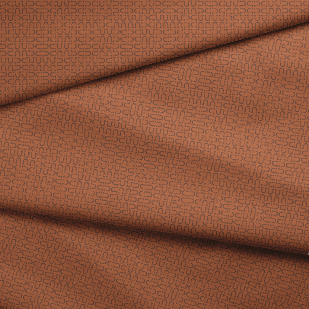Sophisticated geometric horseshoe pattern in rich terracotta and brown tones creates a contemporary yet heritage-inspired design perfect for upholstery, home decor, or formal settings.