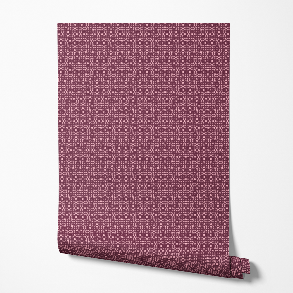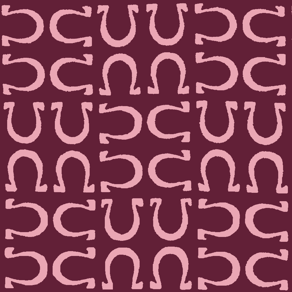 Retro horseshoe pattern in burgundy and blush creates a stylish geometric motif perfect for home decor or upholstery. The repeating design offers a contemporary take on vintage equestrian elements.