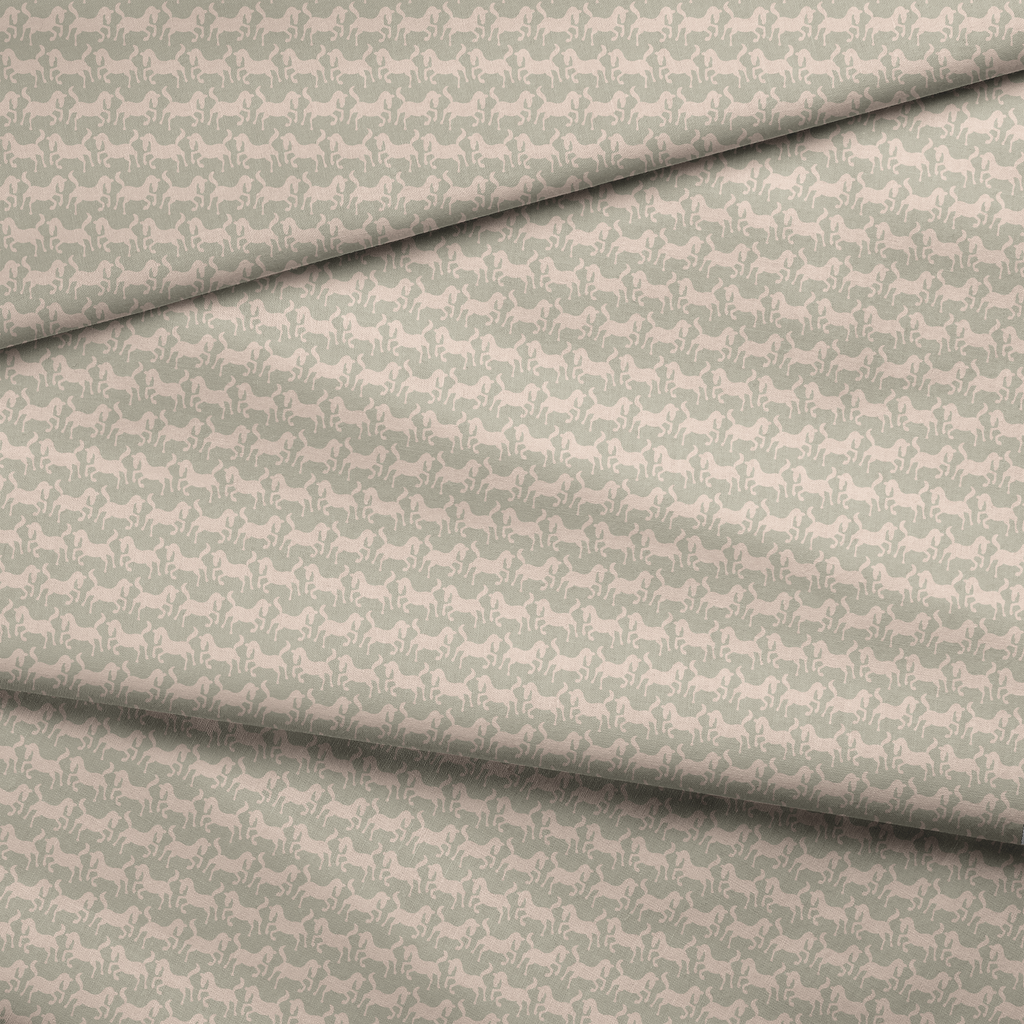 Elegant traditional horse silhouettes create a timeless equestrian pattern in soft cream on a sage background. Perfect for heritage-inspired home decor with a classic, sophisticated appeal.