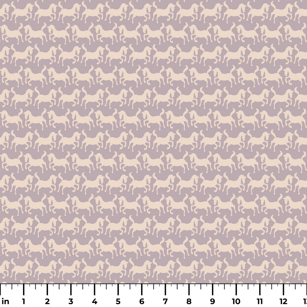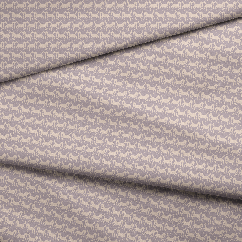 Elegant cream horse silhouettes on a soft gray background create a timeless, repeating pattern perfect for heritage-inspired decor or equestrian-themed spaces.