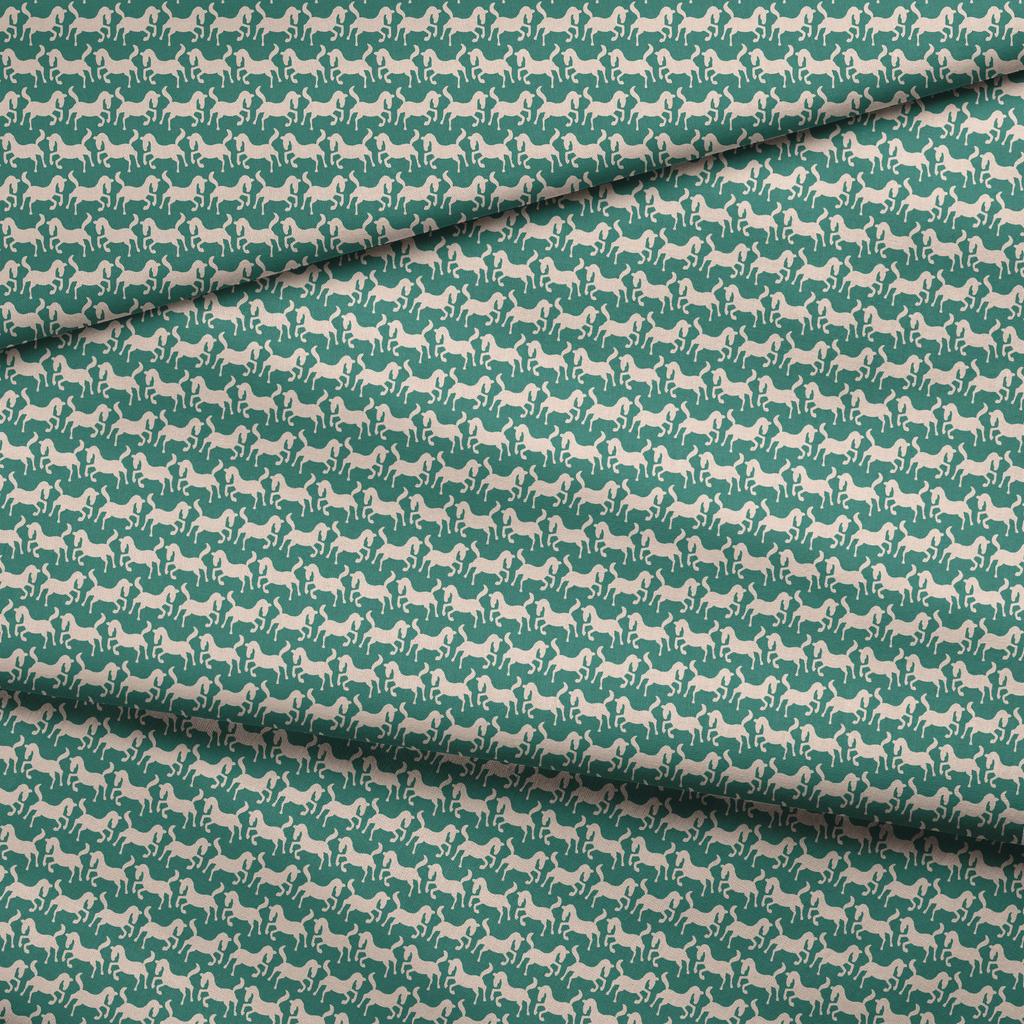 Elegant equestrian pattern featuring stylized horses in a sophisticated mint-green and beige colorway. Perfect for heritage-inspired home decor with a timeless, classic appeal.