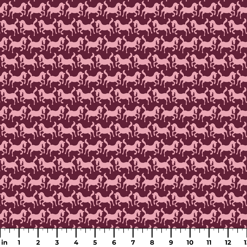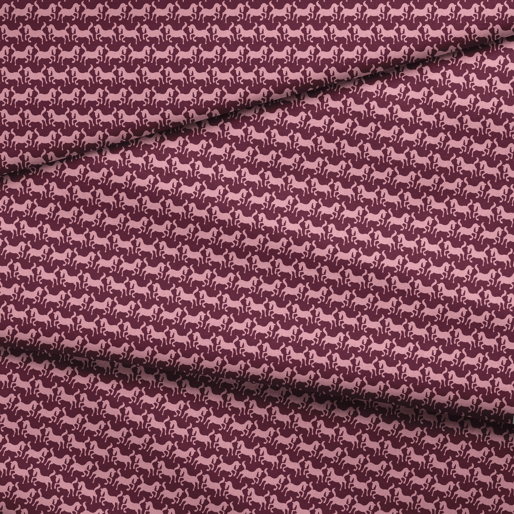 Elegant trotting horses create a classic repeating pattern in soft pink and burgundy hues. Perfect for heritage-inspired home decor or equestrian-themed fashion accessories.