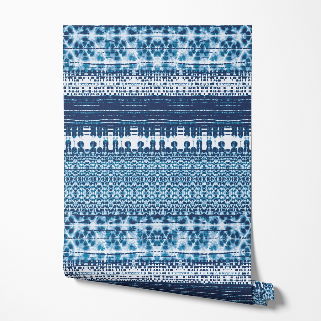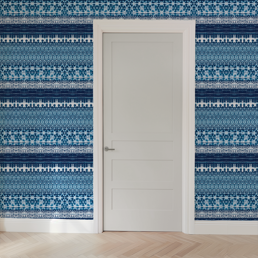 Indigo Tie-Dye Batik Geometric Wallpaper
