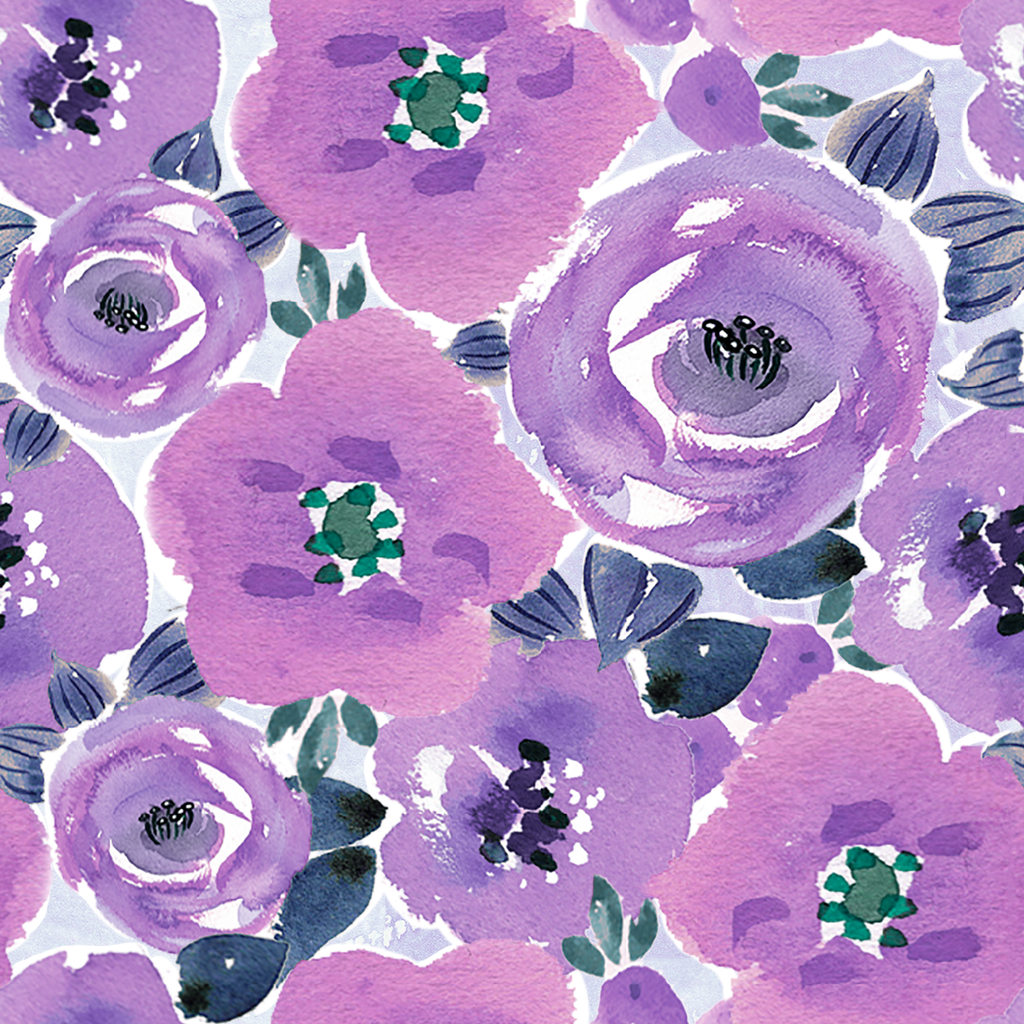 Jenny Faw Blossoms Watercolor Floral on Purple Fabric