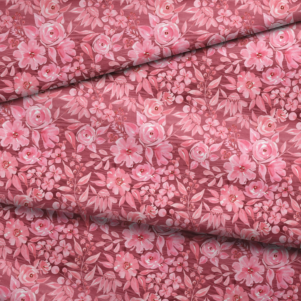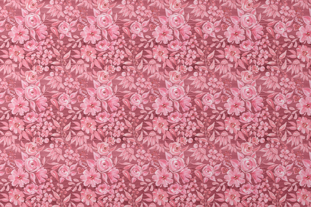 Lush pink and red floral pattern featuring delicate roses and wildflowers in monochromatic rosy tones, creating a romantic and feminine vintage-inspired aesthetic for any project.