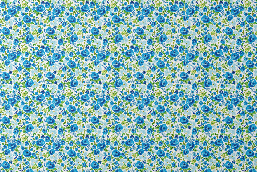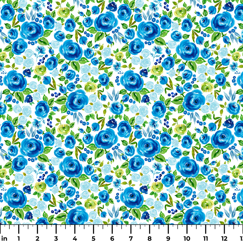 Jenny Faw Vibrant Roses in Blue & Green Fabric
