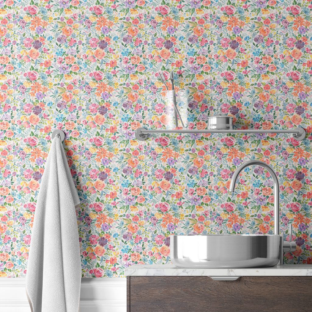 Jenny Faw Watercolor Floral Blooms in Multi Wallpaper