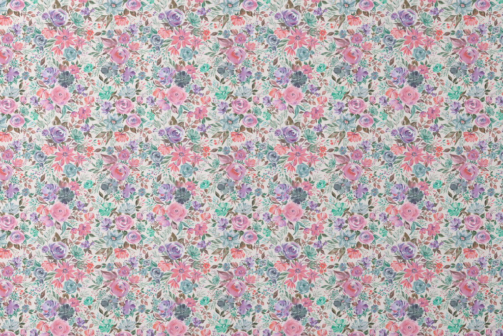 Vibrant watercolor floral pattern featuring pink, purple, and teal blooms with delicate foliage on a cream background, perfect for adding a feminine or boho aesthetic to any project.
