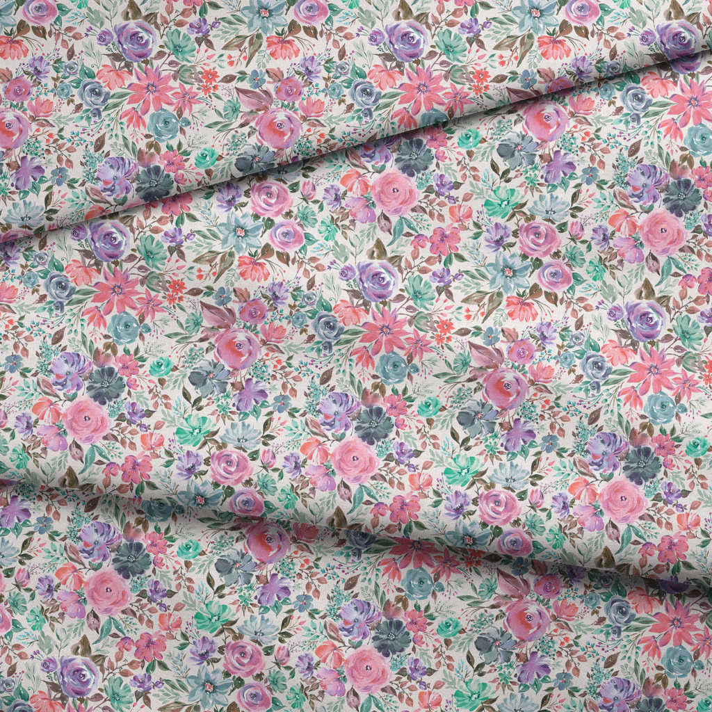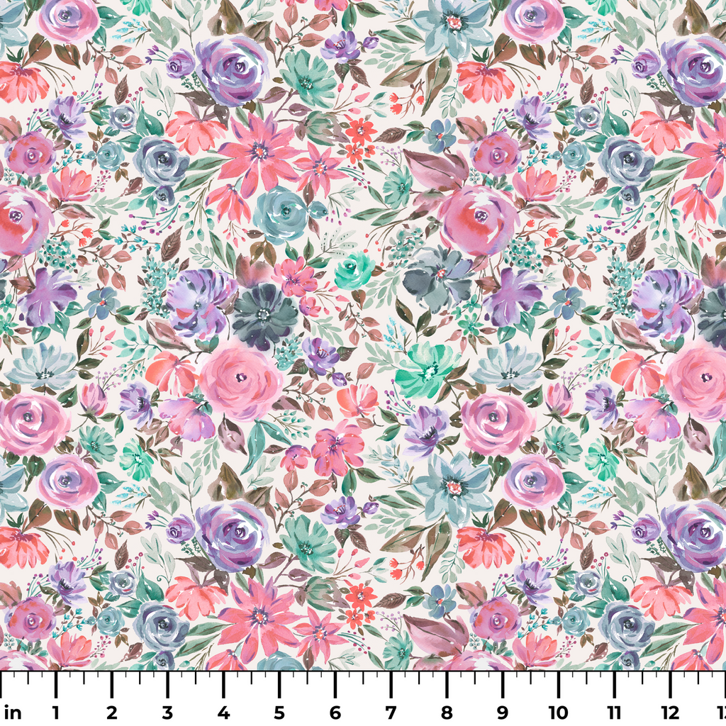 Jenny Faw Watercolor Floral Blooms in Pink & Purple Fabric