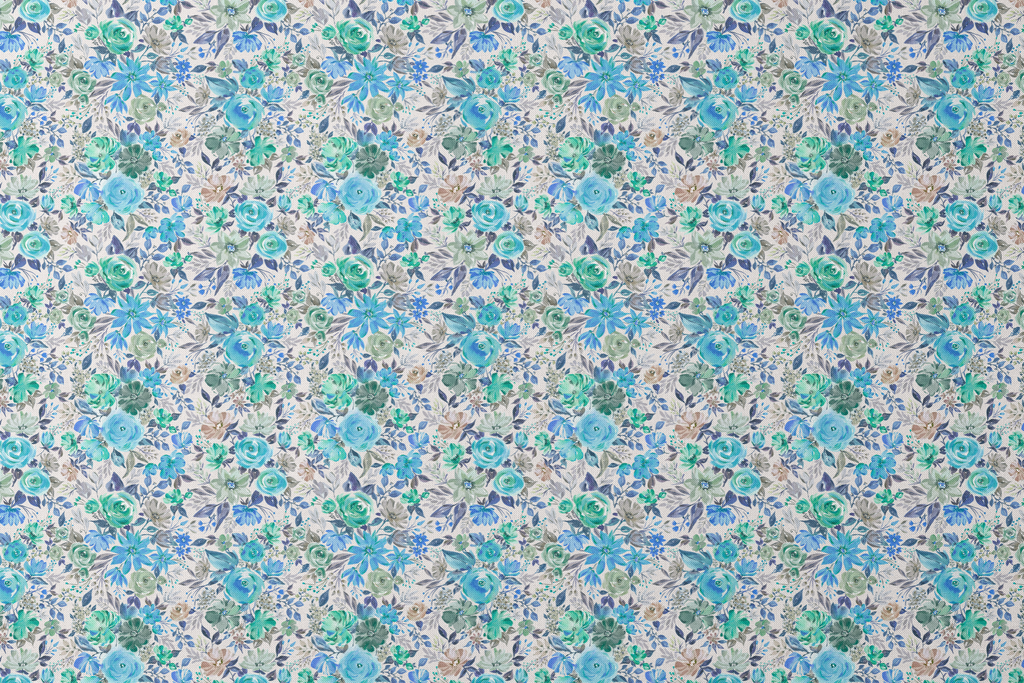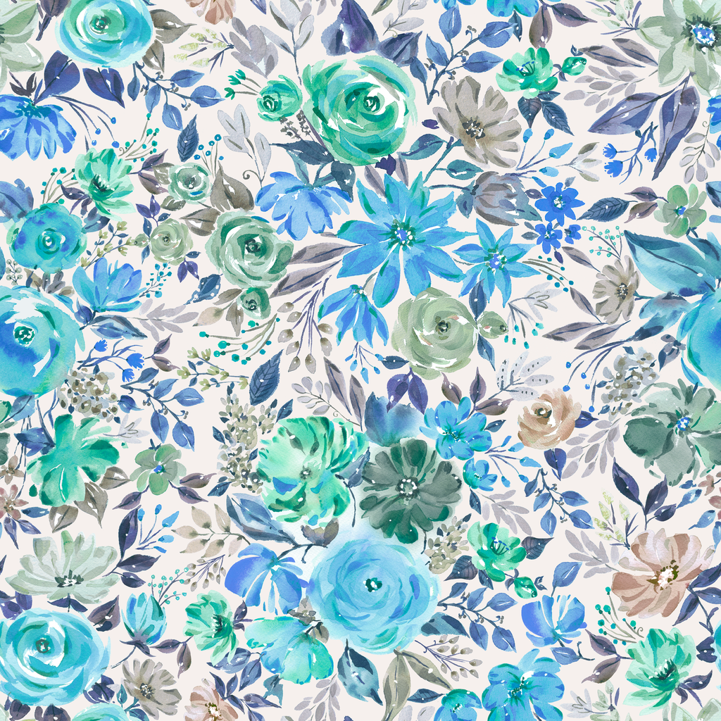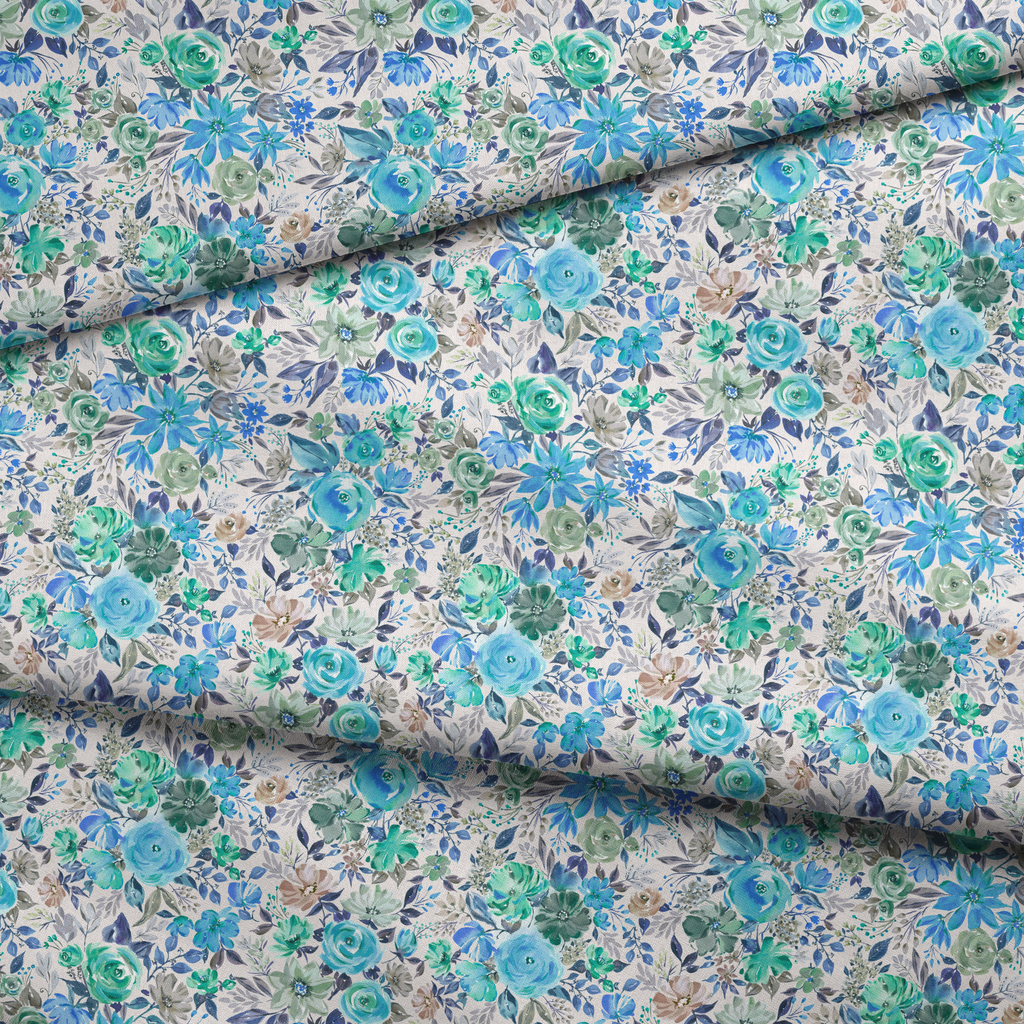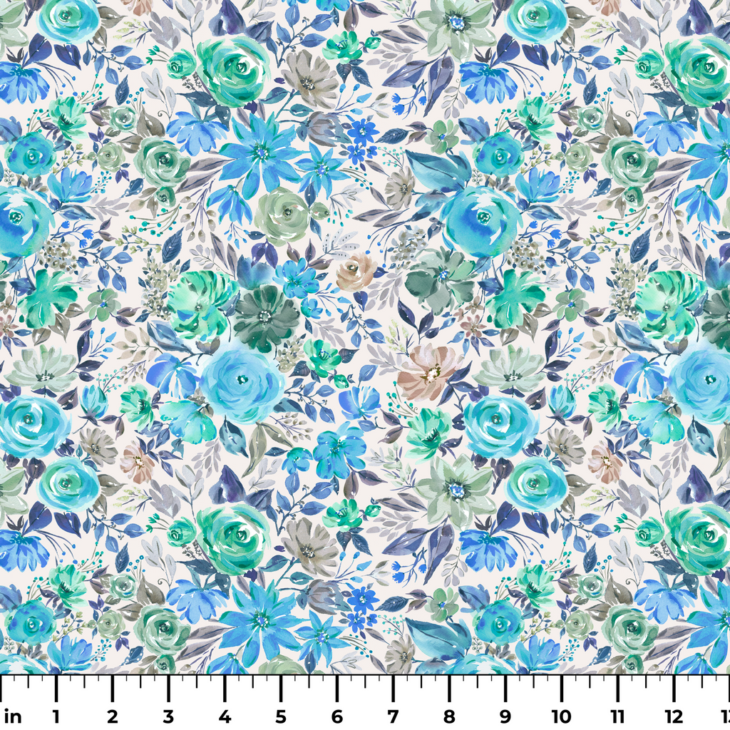 Jenny Faw Watercolor Floral Blooms in Turquoise Blue Fabric