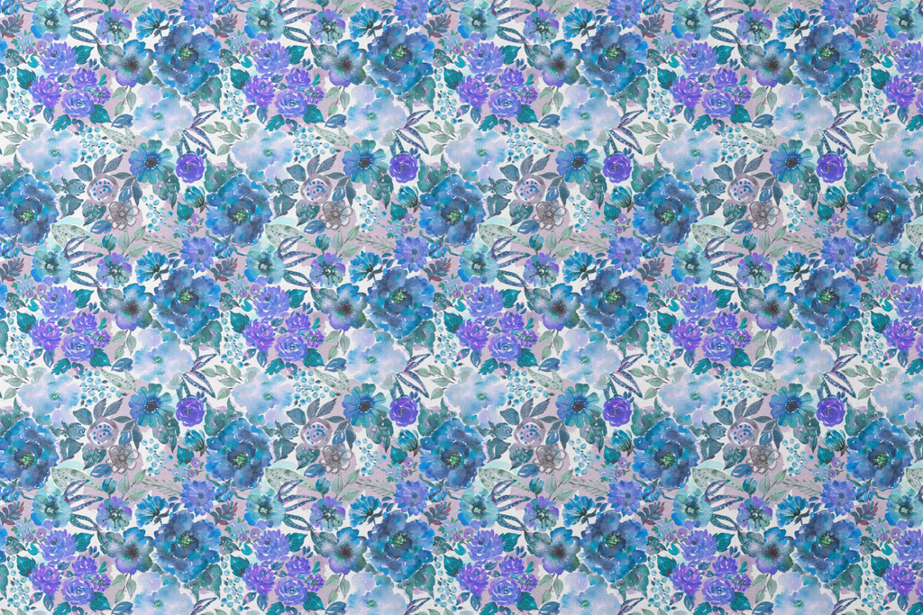 Jenny Faw Watercolor Jewel Garden on Blue Fabric