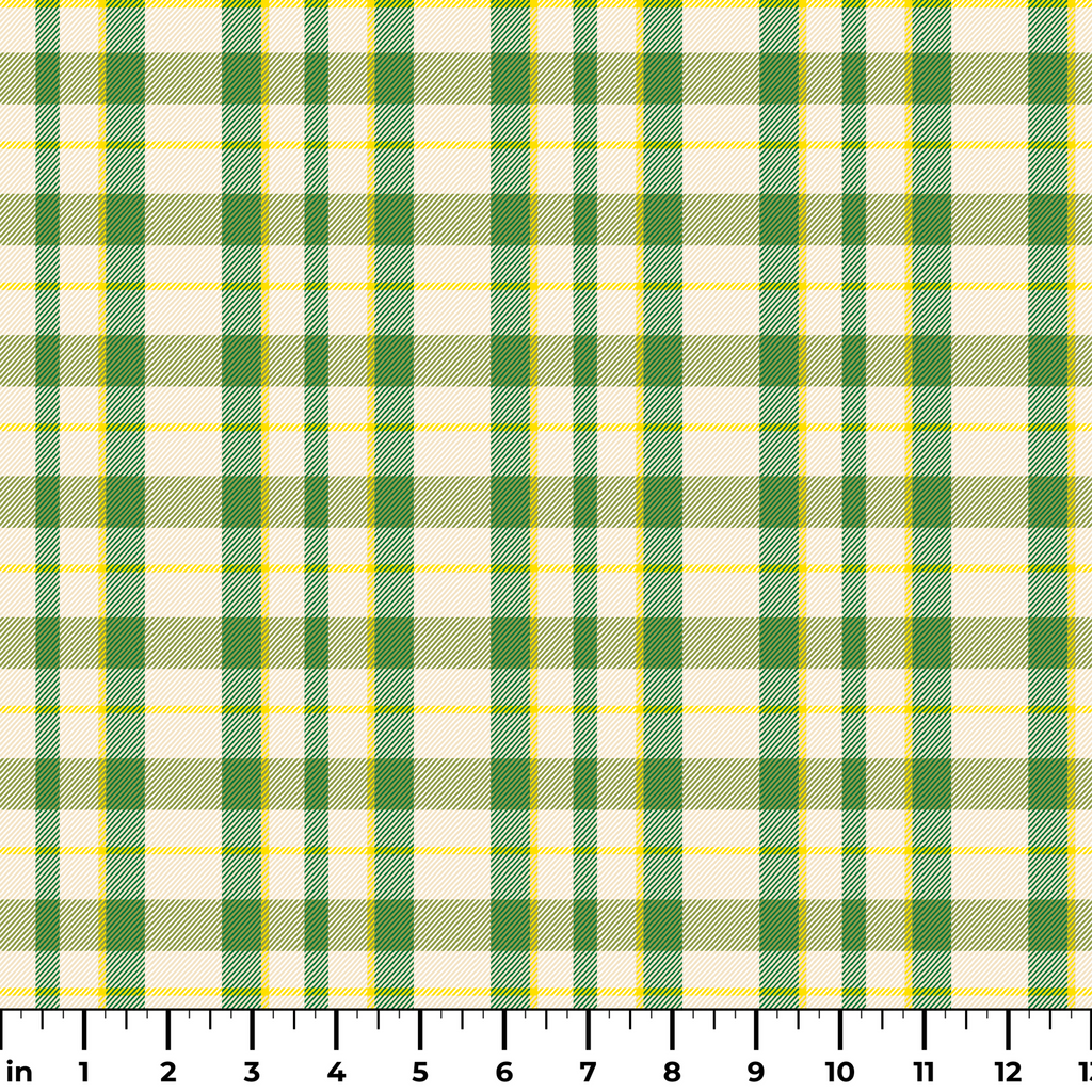 John Deere classic green and yellow plaid pattern with a traditional checkerboard design, perfect for heritage home decor or upholstery with a timeless country aesthetic.