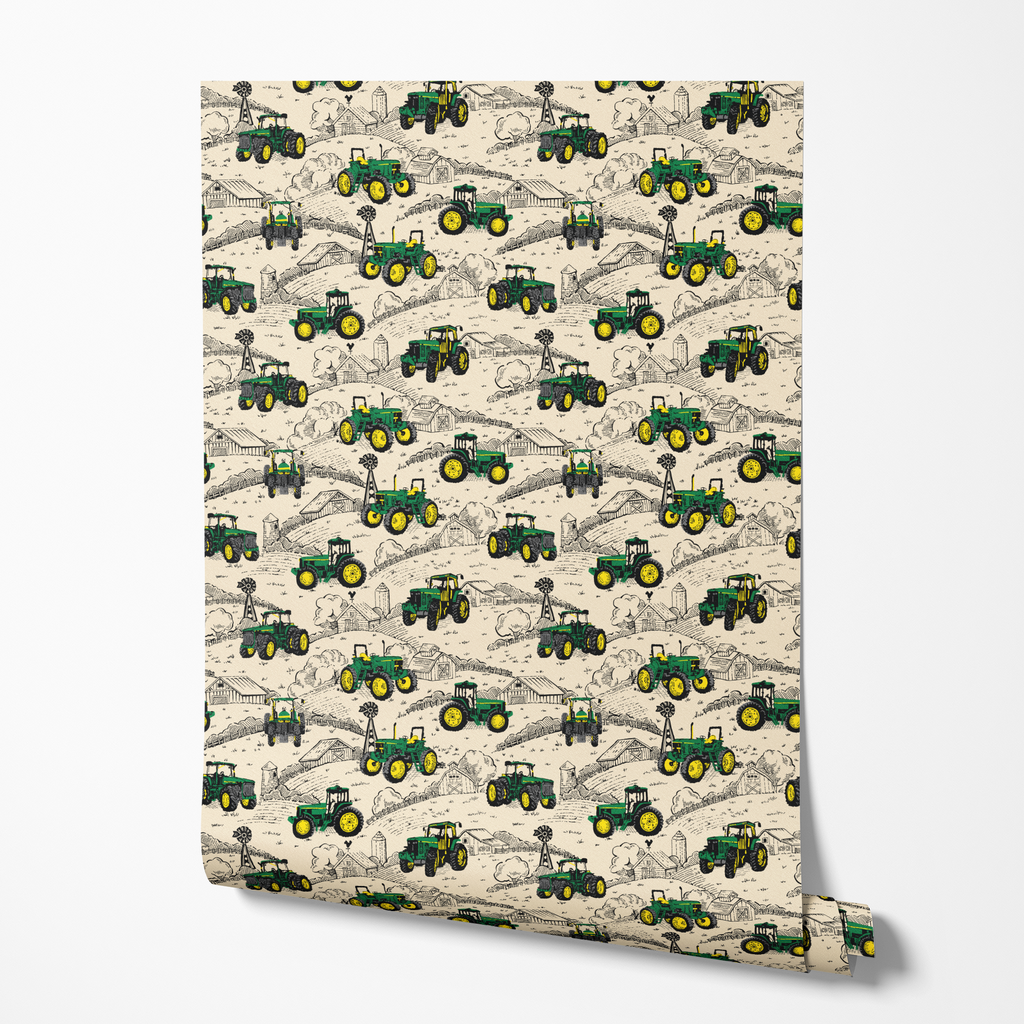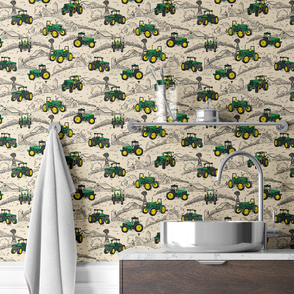 John Deere Farmland Dynasty Green Tractor Countryside Wallpaper