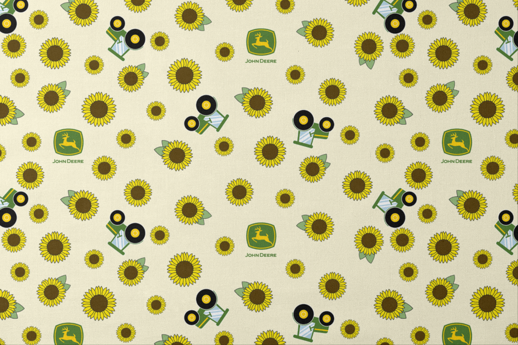 Cheerful sunflowers dance across a buttery cream background, interspersed with iconic John Deere tractors and logo emblems. This delightful fabric brings countryside charm to any sewing project, perfect for quilts, tote bags, or farm-themed nursery accessories. The combination of agricultural machinery and nature's sunshiny flowers makes this a standout choice for the country home enthusiast or little tractor fan