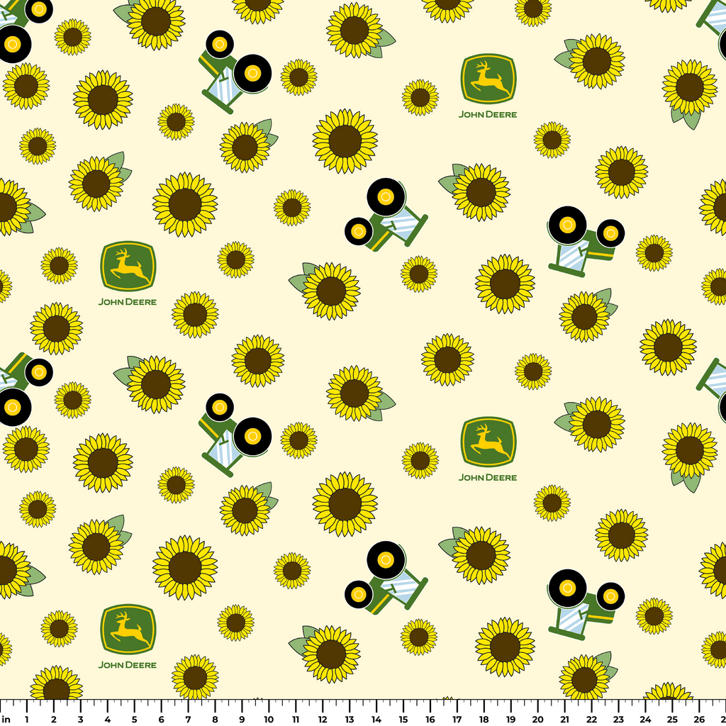 John Deere - Farmland Sunshine - Sunflower Tractor Fabric