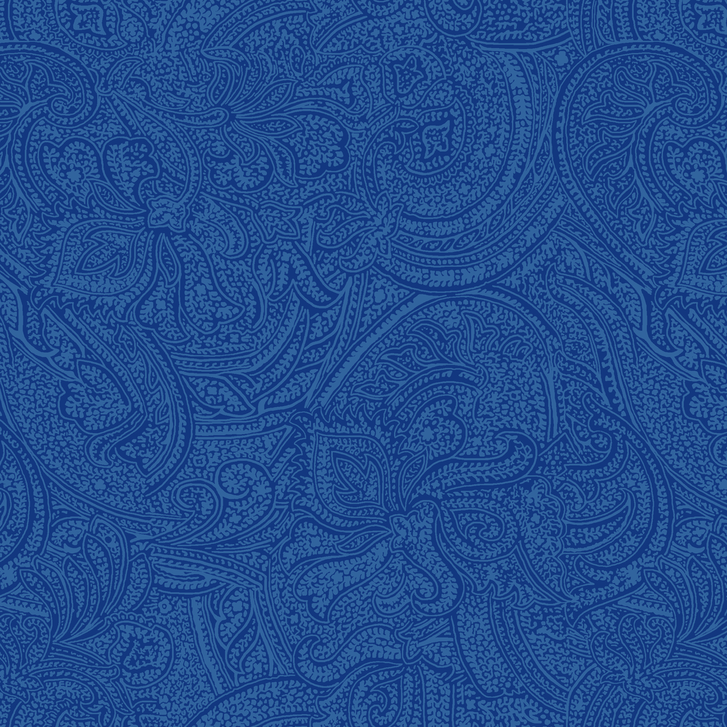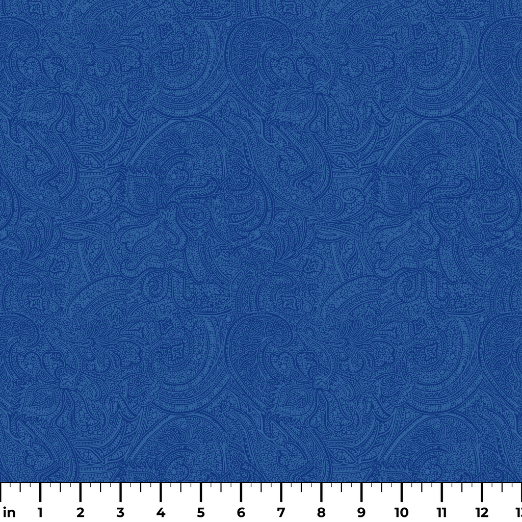 Rich cobalt blue paisley swirls dance across this elegant tone-on-tone fabric, creating a sophisticated texture that catches the eye. The intricate pattern features curling teardrop motifs and delicate scrollwork reminiscent of traditional block printing techniques, but with a modern monochromatic twist. Perfect for quilting projects that need depth without busyness, or as a striking lining for bags and accessories where a pop of color makes all the difference.