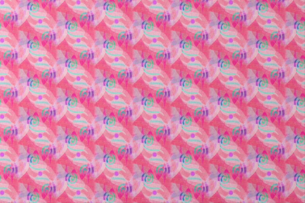Dreamy watercolor swirls dance across a vibrant pink backdrop in this enchanting fabric design. Mint green and purple spirals float like candy confections against the textured rose background, creating a sense of playful movement and depth. The translucent overlapping shapes give this pattern an ethereal, almost magical quality that would breathe life into any creative project. Perfect for whimsical children's room accessories or a stand-out lining in a tote bag.