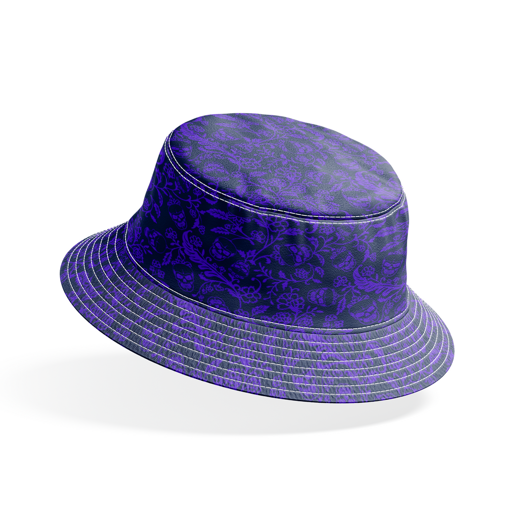 Purple Halloween pattern with floral motifs and sugar skulls. It adds a a subtle touch of spooky season to any project! Perfect for home decor or contemporary accents.