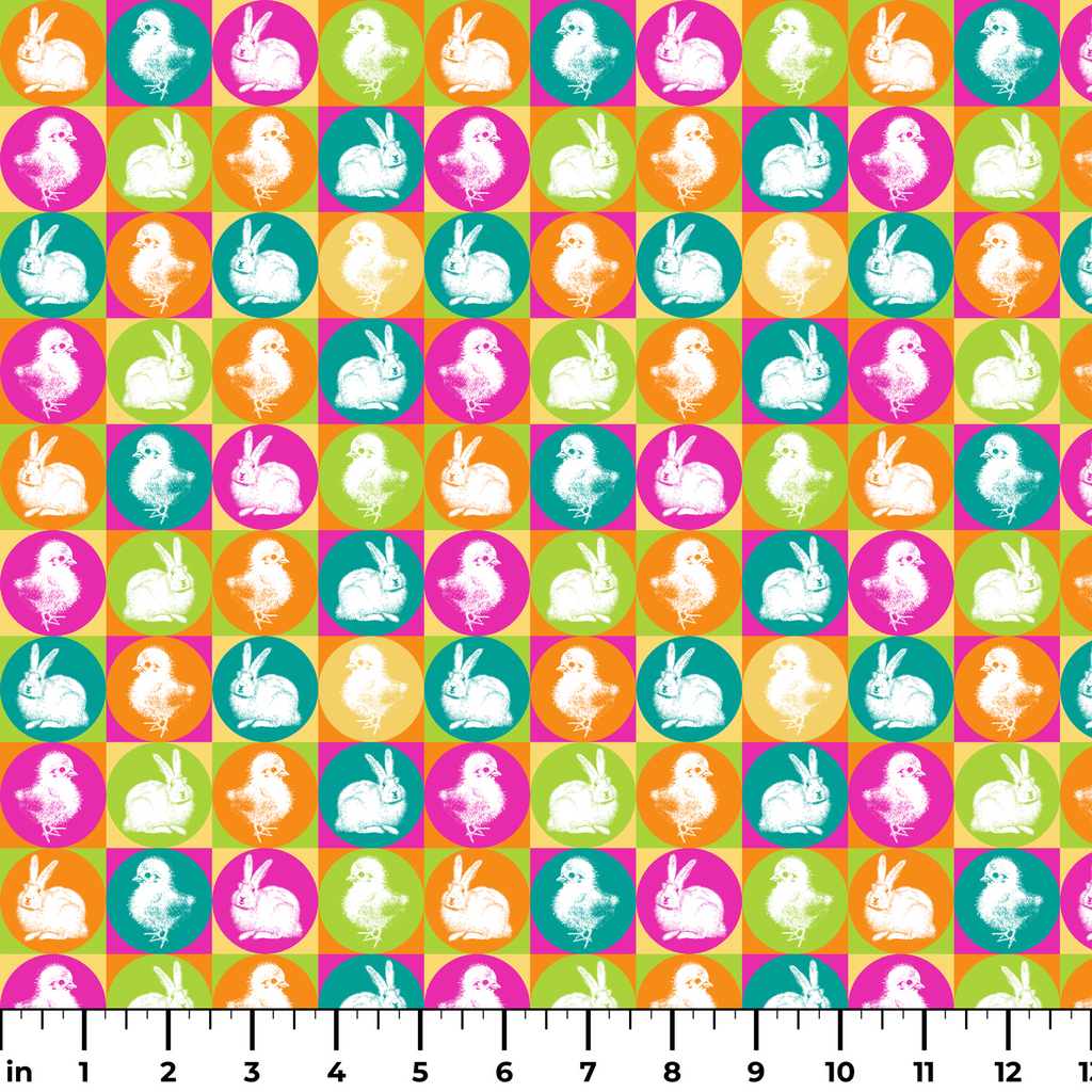 Kate Ward Thacker - Hoppy Pop - Vibrant Bunny & Chick Fabric