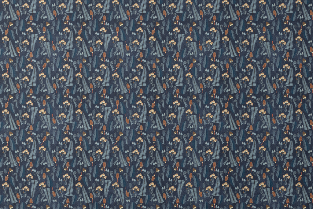 Kate Ward Thacker - Midnight Forage - Navy Mushroom Fabric